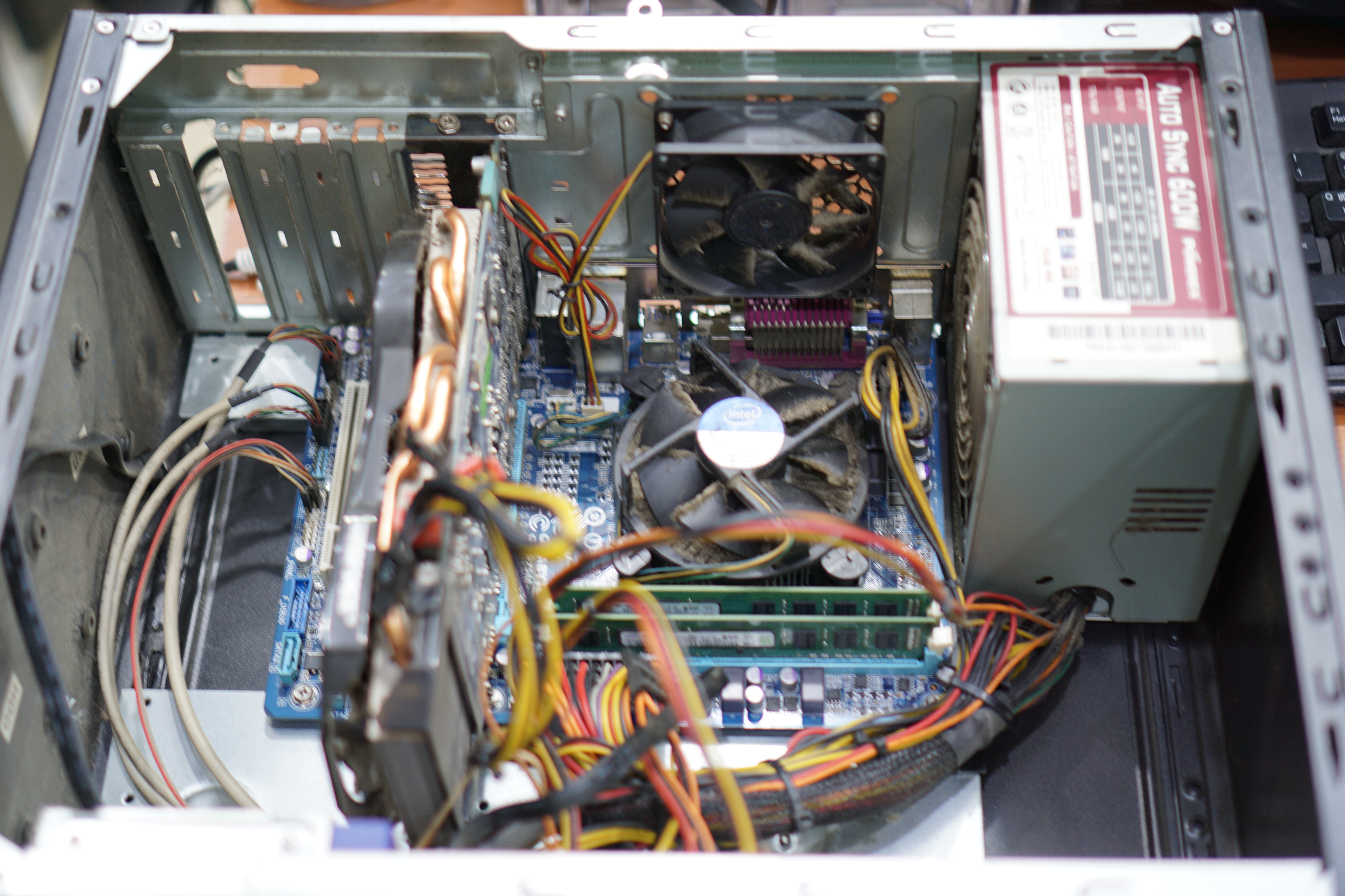 오래된 컴퓨터라 먼지가 두껍게 붙어 있습니다.