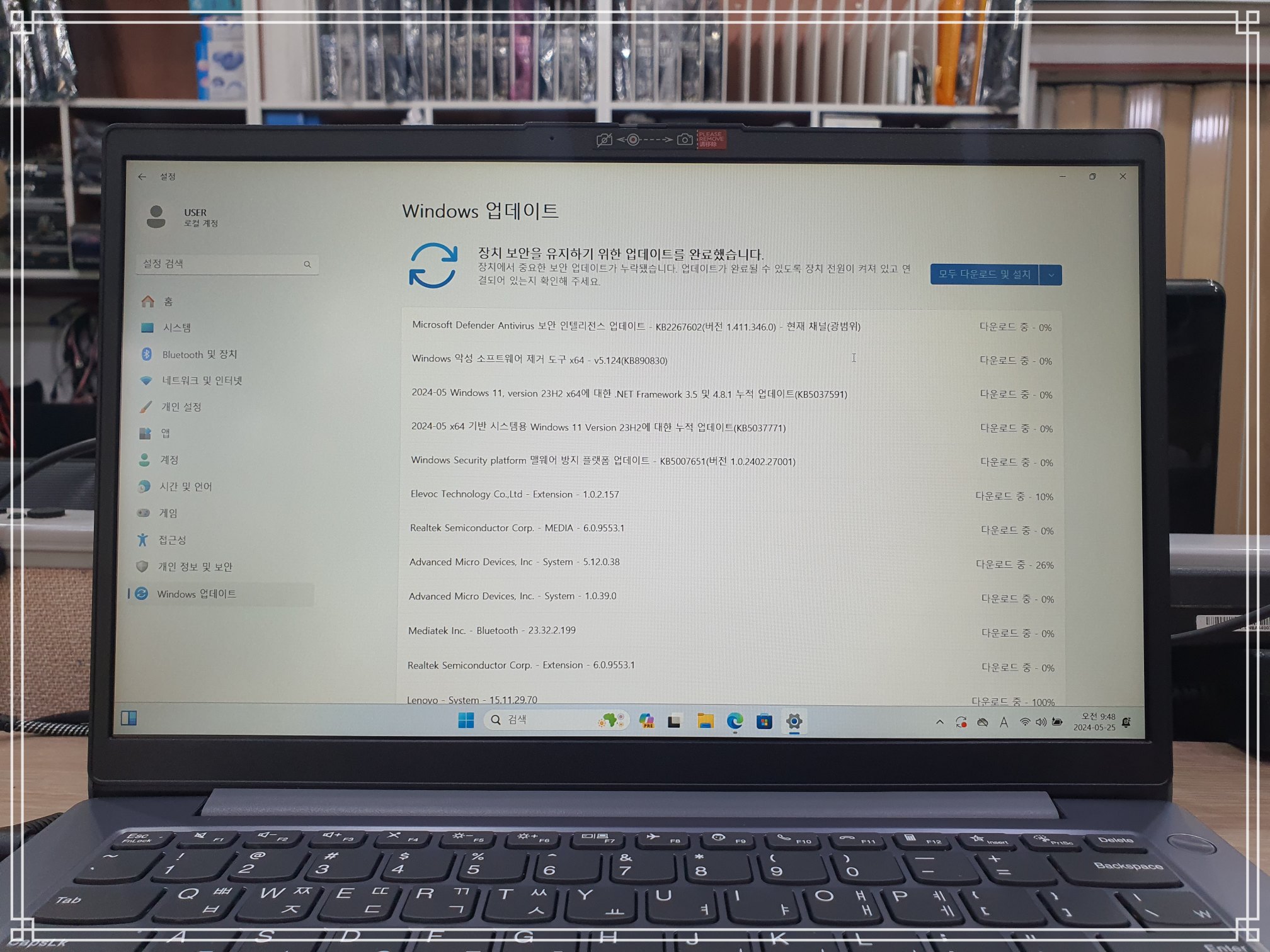 윈도우 업데이트: 시스템 안정성과 성능 향상을 위해 윈도우 업데이트를 실행합니다.