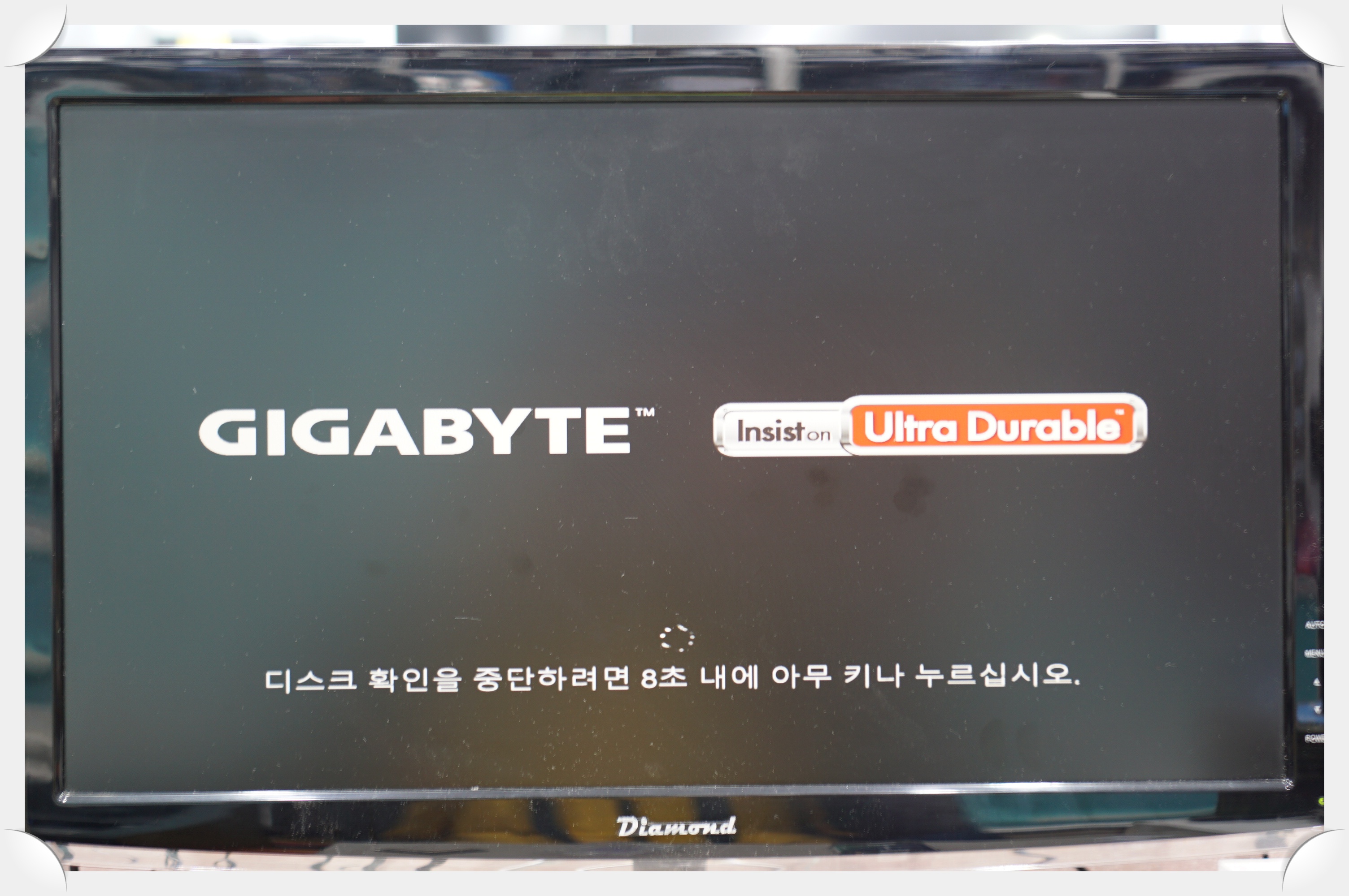 점검을 위해 전원을 넣 봤는데 로고까지는 잘 나오고 있습니다.