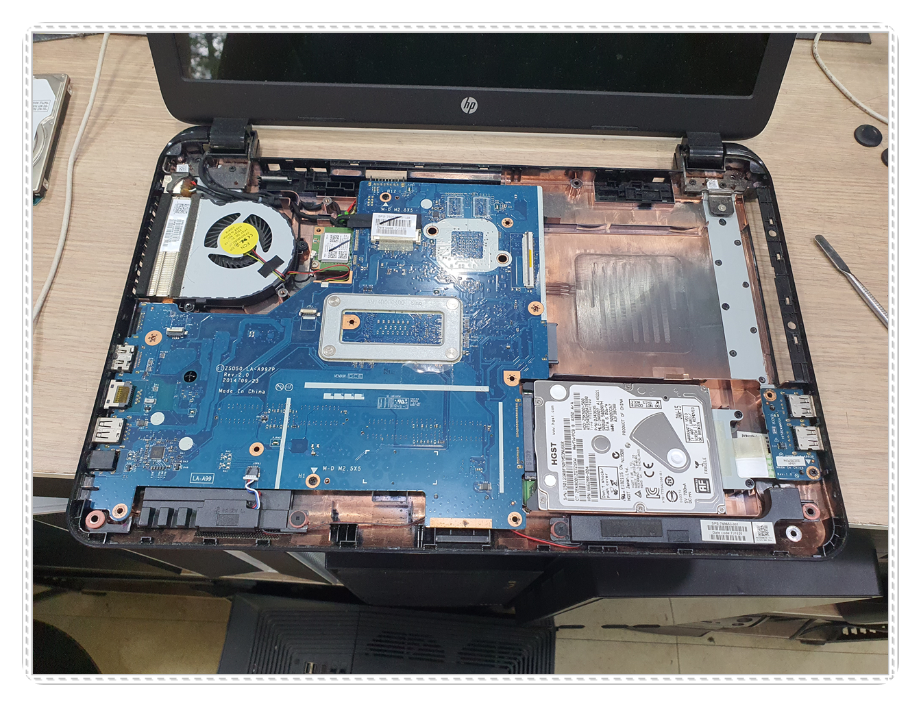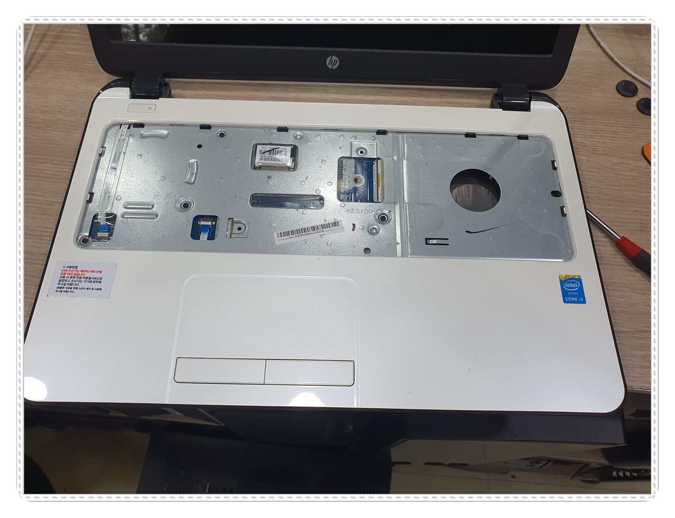 기본 점검 과정에서는 메모리 용량, CPU 성능 상태, 메인보드 슬롯 등을 확인했습니다. 다행히 이 HP노트북은 메모리 부분도 크게 부족하지 않았고, 부팅 디스크만 SSD로 교체해줘도 체감 성능이 훨씬 좋아질 것 같았습니다. 다음으로는 내부 먼지 청소가 필요한지 확인했는데, 팬이나 통풍구에 먼지가 어느 정도 쌓여 있었기에 간단하게 정리 작업을 진행했습니다. 이렇게 미리 발열 문제도 잡아줘야 SSD 교체 후에도 안정적으로 사용할 수 있거든요.