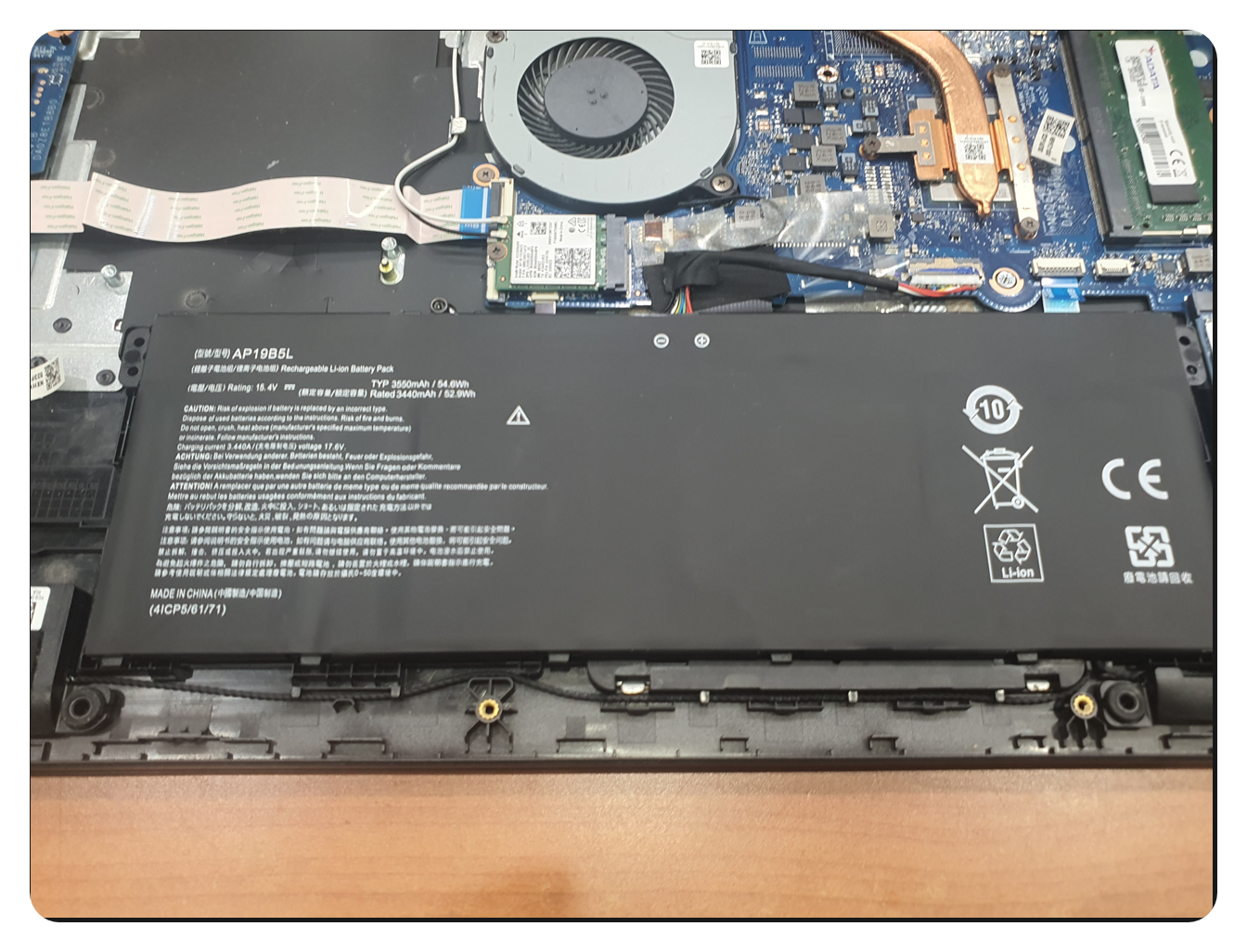우선 고객님께서 미리 새 배터리를 주문하셨기에, 입고 당일 바로 교체 작업이 가능했습니다. 노트북 하판을 열어보니 내부 먼지나 케이블 손상은 크지 않았지만, 오래된 배터리는 볼록해지거나 노화가 심한 경우가 종종 있어서 꼼꼼히 점검해야 합니다. 자칫하면 메인보드나 다른 부품에도 악영향을 줄 수 있으니까요. 다행히 이 노트북은 배터리만 교체해주면 충분히 정상 상태로 되돌릴 수 있겠다는 판단이 섰습니다.
