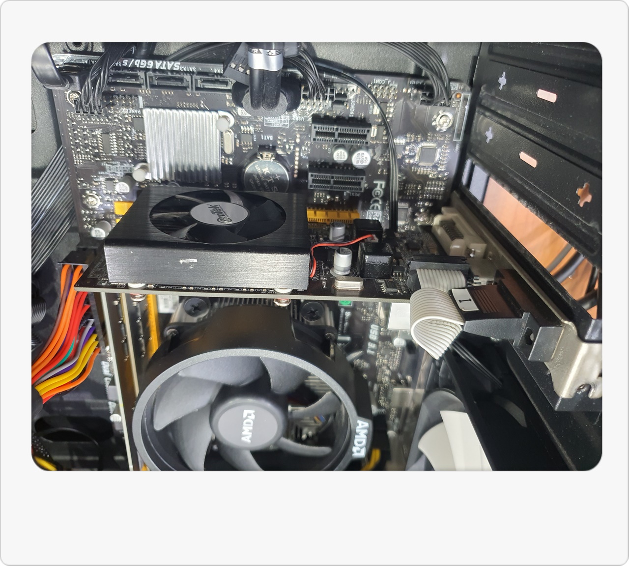 먼저 본체 뚜껑을 열고 살펴보니, 라이젠 CPU와 호환되는 A320 칩셋 메인보드를 사용 중이셨어요. 그런데 몇몇 부품에 미세한 손상이 보이더군요. 콘덴서가 살짝 부풀어 있는 데다, 일부 포트에서 접촉 불량 흔적이 발견됐습니다. 예전에 제가 사용하던 PC도 비슷한 문제를 겪은 적이 있어서, “혹시 메인보드를 교체하면 안정적으로 돌아갈 수 있다”라고 미리 안내해드렸어요. 고객님 역시 “그래도 예전부터 컴퓨터가 자주 꺼져서 불안했다”라며, 빠른 교체를 원하셨고요.