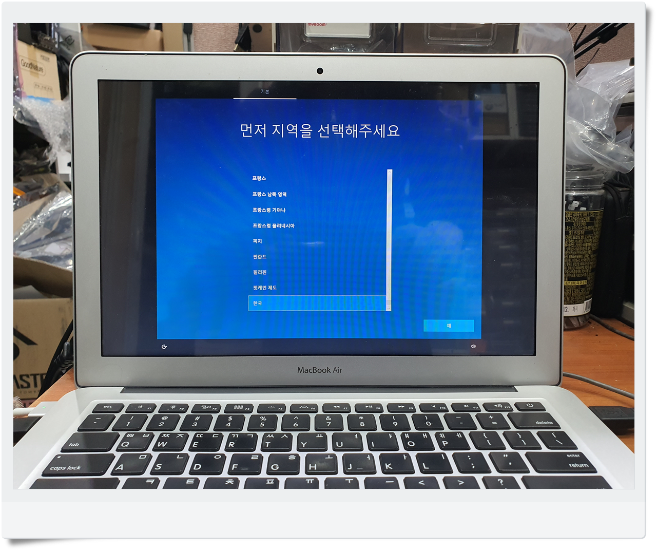설치 완료 후에는 윈도우 쪽 디바이스 매니저에 들어가, 혹시 드라이버가 누락된 건 없는지 최종 점검합니다. 맥북에어 특유의 트랙패드 감도나 키보드 기능이 잘 살아있는지, 와이파이 연결이 원활한지 등도 살펴보고요. 아울러 윈도우에 바이러스 백신을 설치하거나, 자동 업데이트 설정을 어떻게 할지에 대해 고객님께 안내해드렸습니다. 아무래도 맥OS보다 윈도우가 보안이나 관리를 좀 더 꼼꼼히 챙겨야 하거든요.