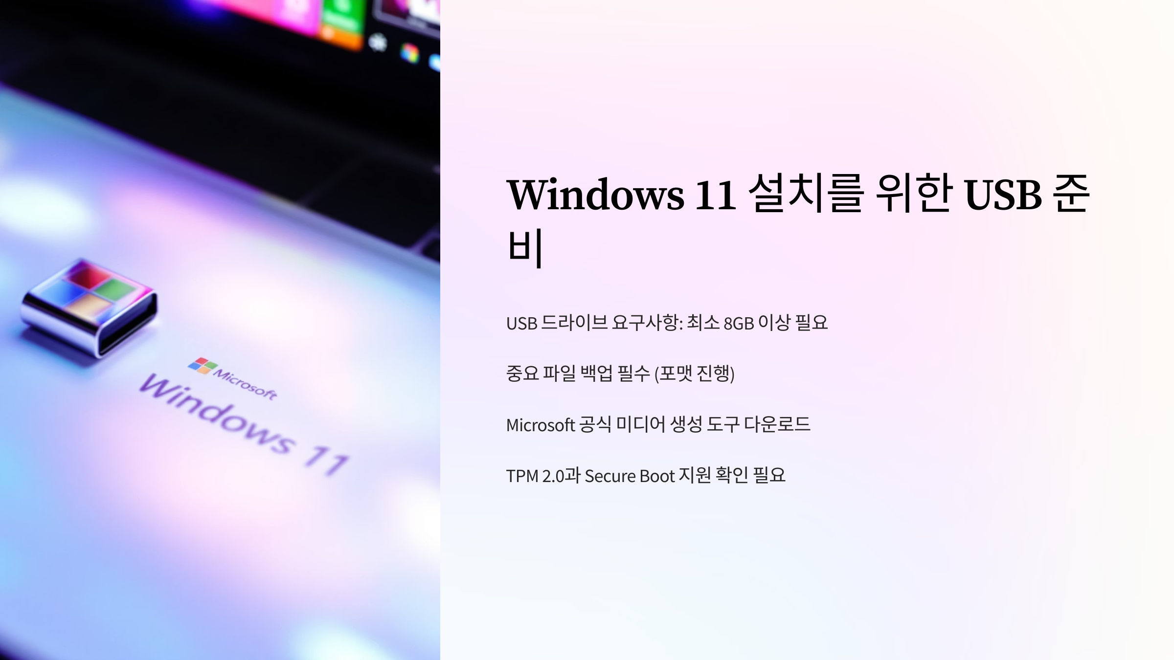 Windows 11 설치를 위한 USB 준비