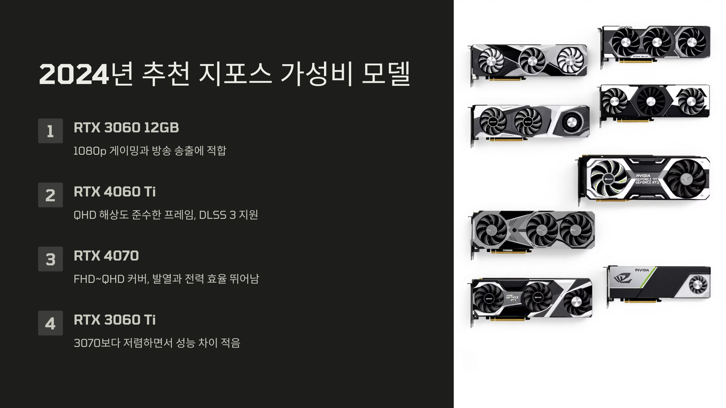 아래는 2024년 기준으로 가장 높은 가성비를 자랑하는 지포스 그래픽카드 TOP 5입니다.