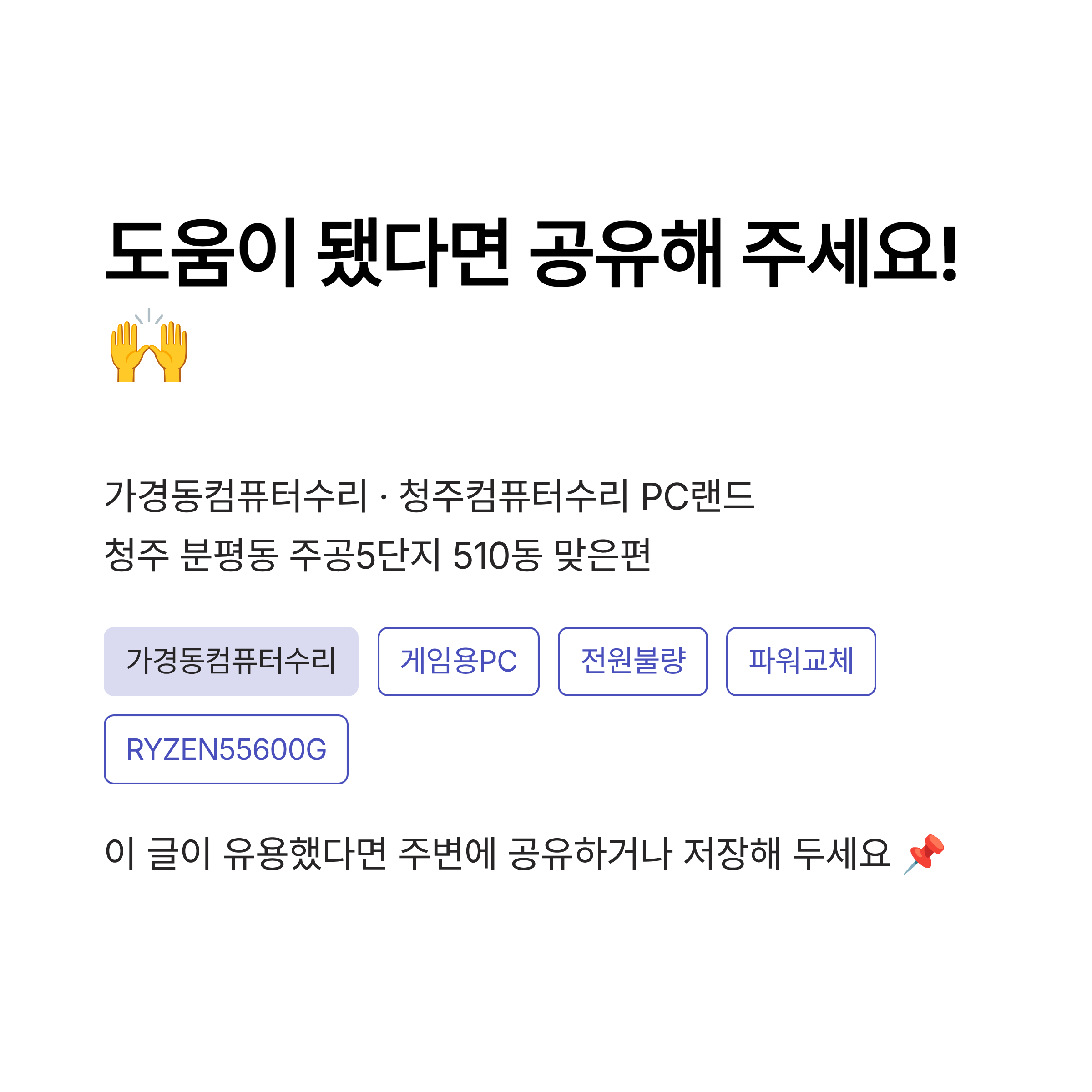 | 분평동컴퓨터수리 Ryzen 5 5600 무한 재부팅이 반복될 때 메모리 교체로 루프를 잡은 점검 흐름 (0) | 2026.03.08 |