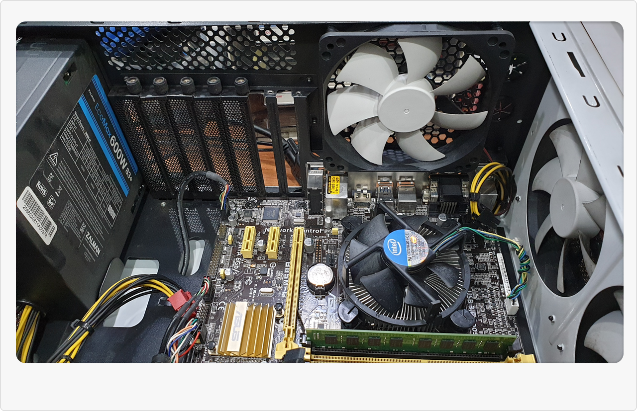 얼마 전에는 한 건설 업체에서 사용하던 4세대 i7-4770 프로세서 기반 PC가 긴급히 들어왔는데, 보드가 완전히 고장 난 상태였어요. 고객님께서는 “가덕컴퓨터수리”로 다른 곳도 알아보셨지만, 분평동에서 13년째 이어져 온 저희 매장을 더 믿음직스럽게 생각해주셨다고 하시더군요. 저희 역시 종종 보기 어려운 상태의 장비도 다뤄 왔기에, 빠르게 진단부터 시작했습니다.