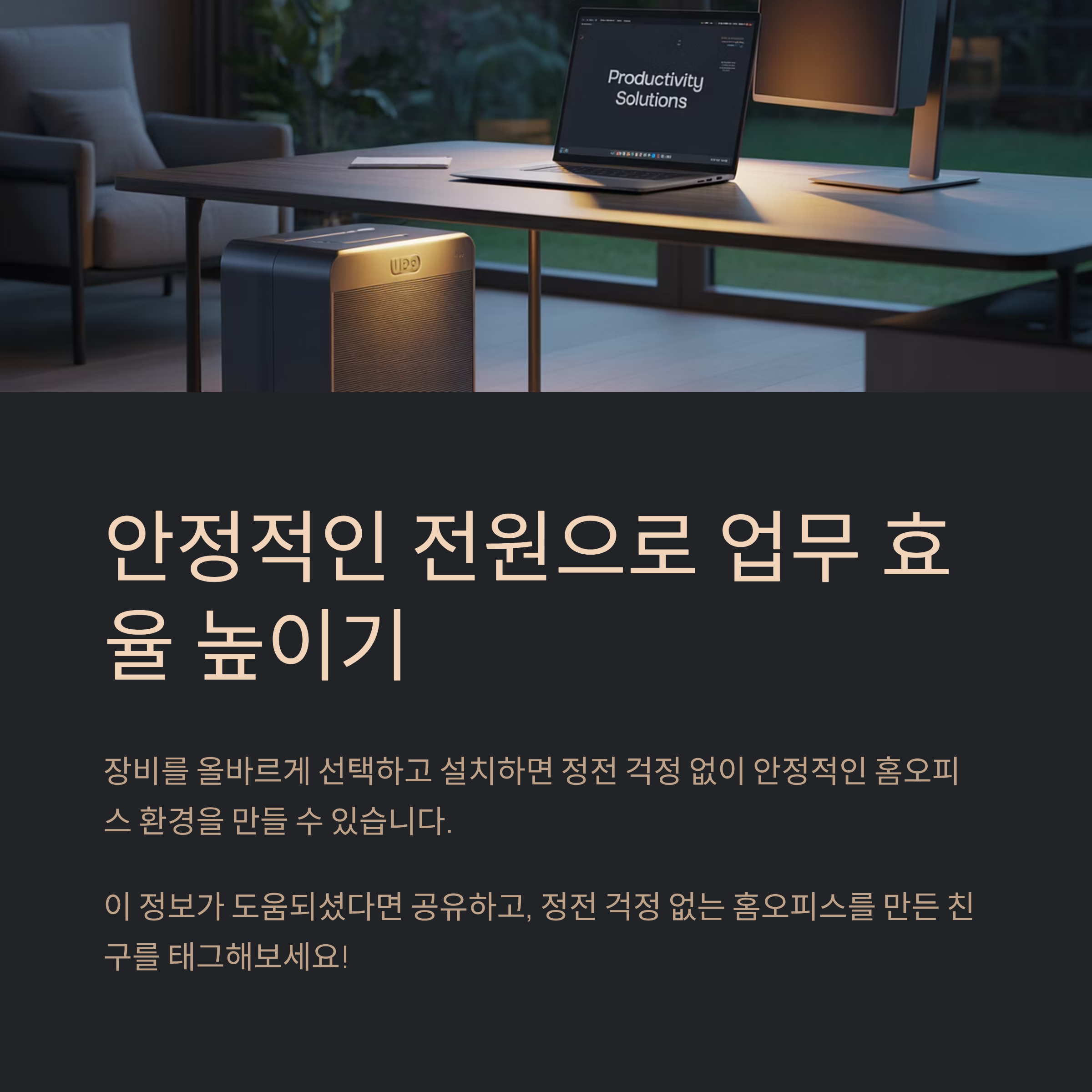 전원은 평소에 티가 잘 안 나서 더 소홀해지기 쉬워요. 하지만 한 번 멈추면 그때부터 시간이 돈이 되죠. 오늘 정리한 흐름대로 장비를 고르고, 설치하고, 테스트하고, 주기적으로 점검만 해도 일상이 훨씬 편안해져요. 작업하다 정전이 와도 침착하게 저장하고, 통신이 끊겨도 금세 복구되는 경험을 몇 번 해 보시면 아마 전원 관리의 중요성을 제대로 체감하실 거예요. 그리고 그 안정감이 작업 퀄리티와 가족들의 일상까지 차분하게 지켜 줘요. 여러분의 집이 더 조용하고 든든해지길 바랄게요. 천천히 하나씩, 하지만 확실하게요.
