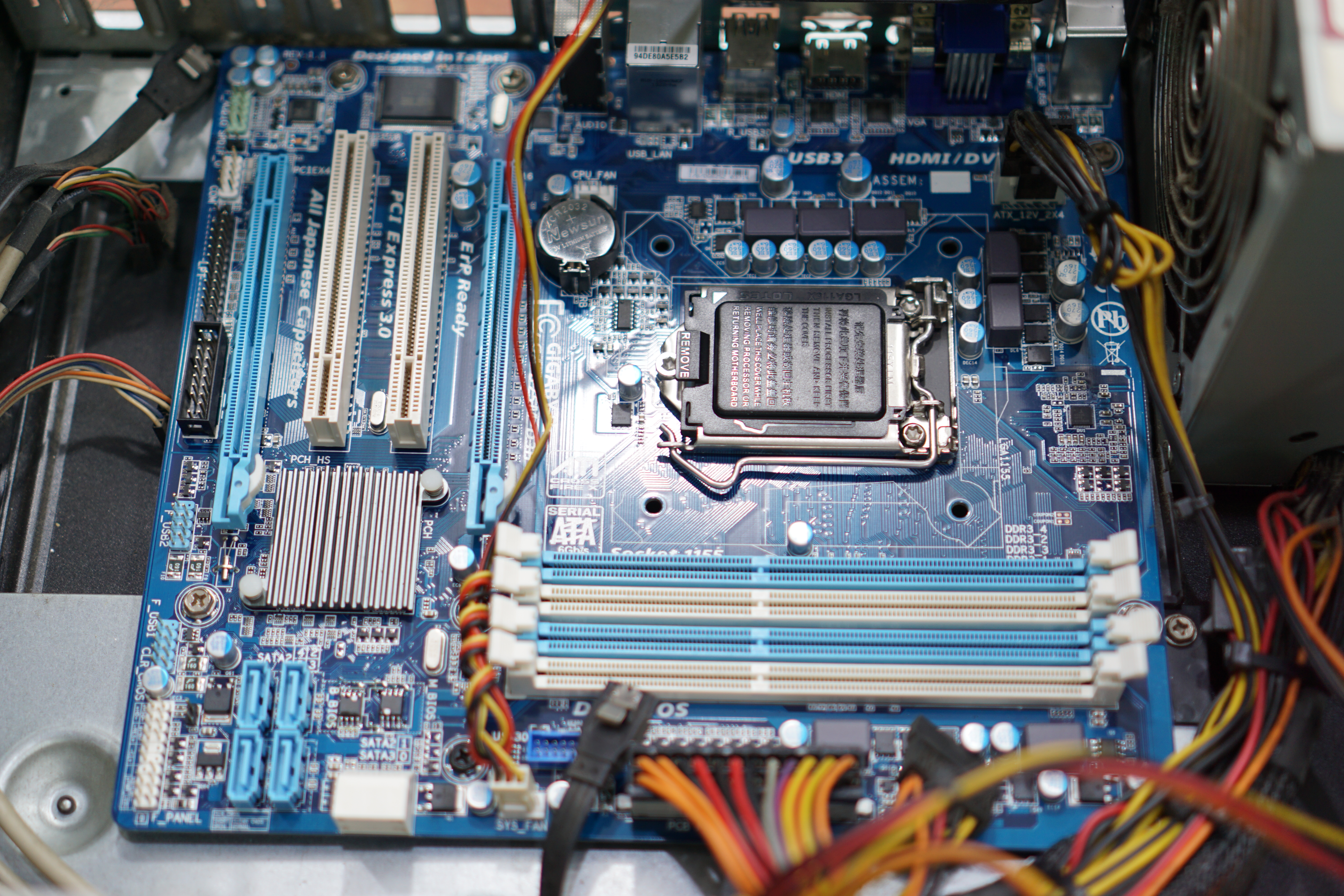이전 메인보드와 동일한 위치에 새로운 B75 메인보드를 설치합니다.