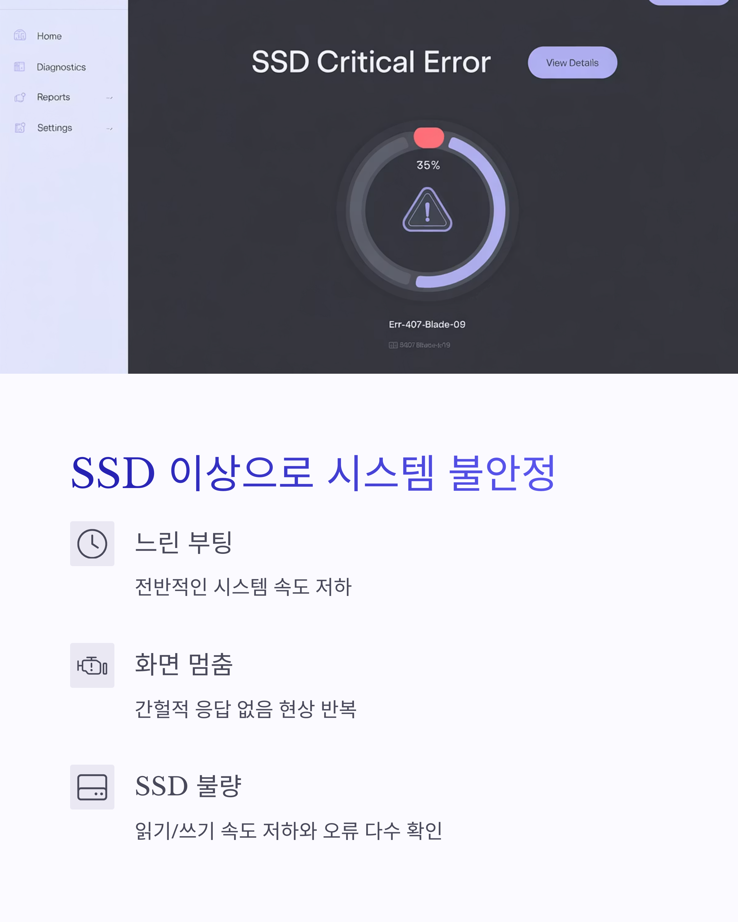 이런 저장장치 불량으로 인한 시스템 불안정이에요.