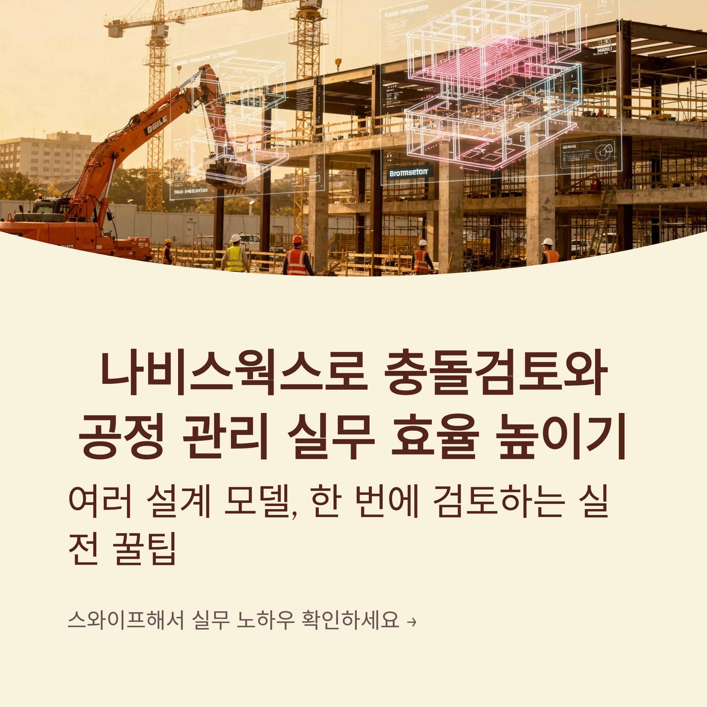 현장에서 여러 설계 모델을 한 번에 열어보면 어디서 문제가 생기는지 찾아내기가 생각보다 쉽지 않아요. 파일 형식도 제각각이라서 열리긴 하는데 화면이 버벅거리거나, 원하는 뷰를 찾느라 시간만 지나갈 때도 많고요. 나비스웍스를 처음 접하면 기능이 너무 많아서 뭐부터 눌러야 할지 막막한데, 몇 가지만 기준을 잡아두면 생각보다 금방 익숙해지더라고요. 오늘은 설치 후 기본 화면부터 충돌 검토, 공정 시뮬레이션까지 실제 업무 흐름에 맞춰 하나씩 정리해볼게요.
