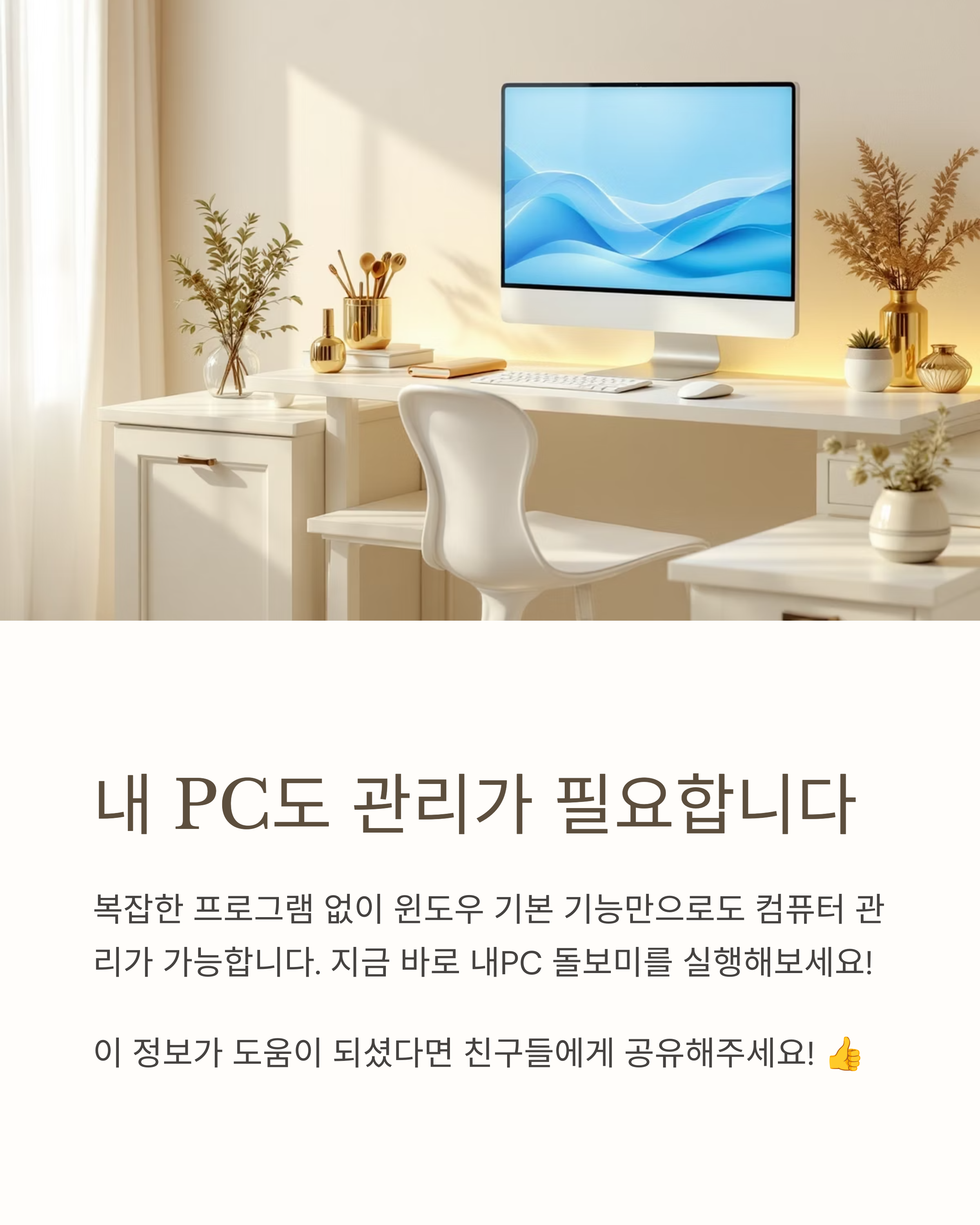 오늘 안내드린 내용을 참고하셔서, 내 컴퓨터도 한 번 꼼꼼히 점검해보시는 건 어떠실까요. 몇 번만 활용해보셔도 관리가 훨씬 쉬워지실 거예요.