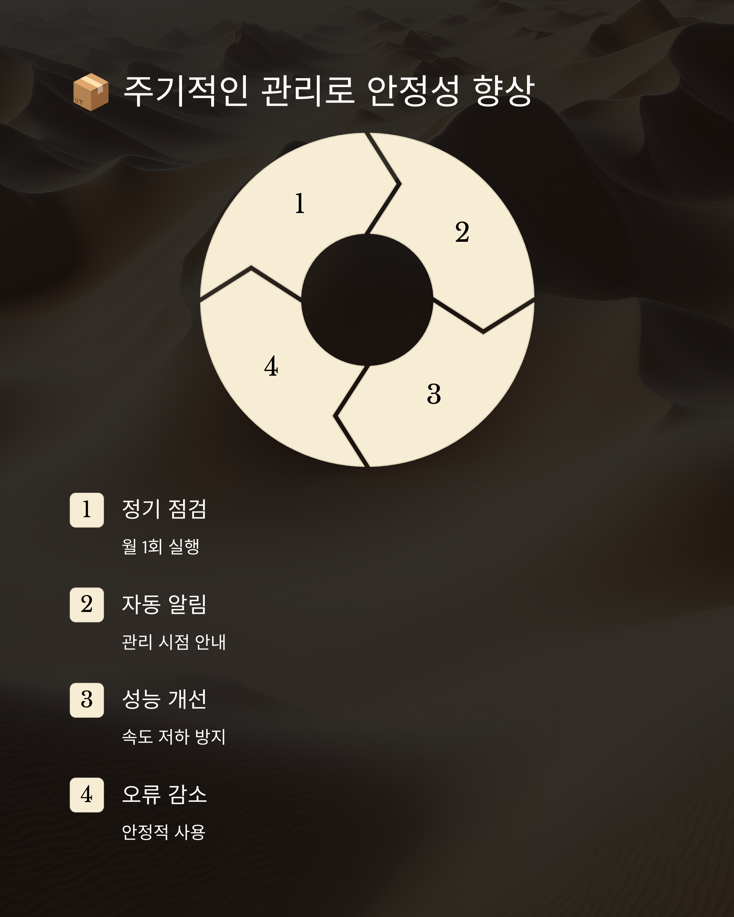 한 번만 사용하는 것보다 주기적으로 점검해주시면 훨씬 효과적이에요. 월 1회 정도만 돌보미 기능을 실행하셔도 속도 저하나 오류 가능성을 줄이실 수 있어요.