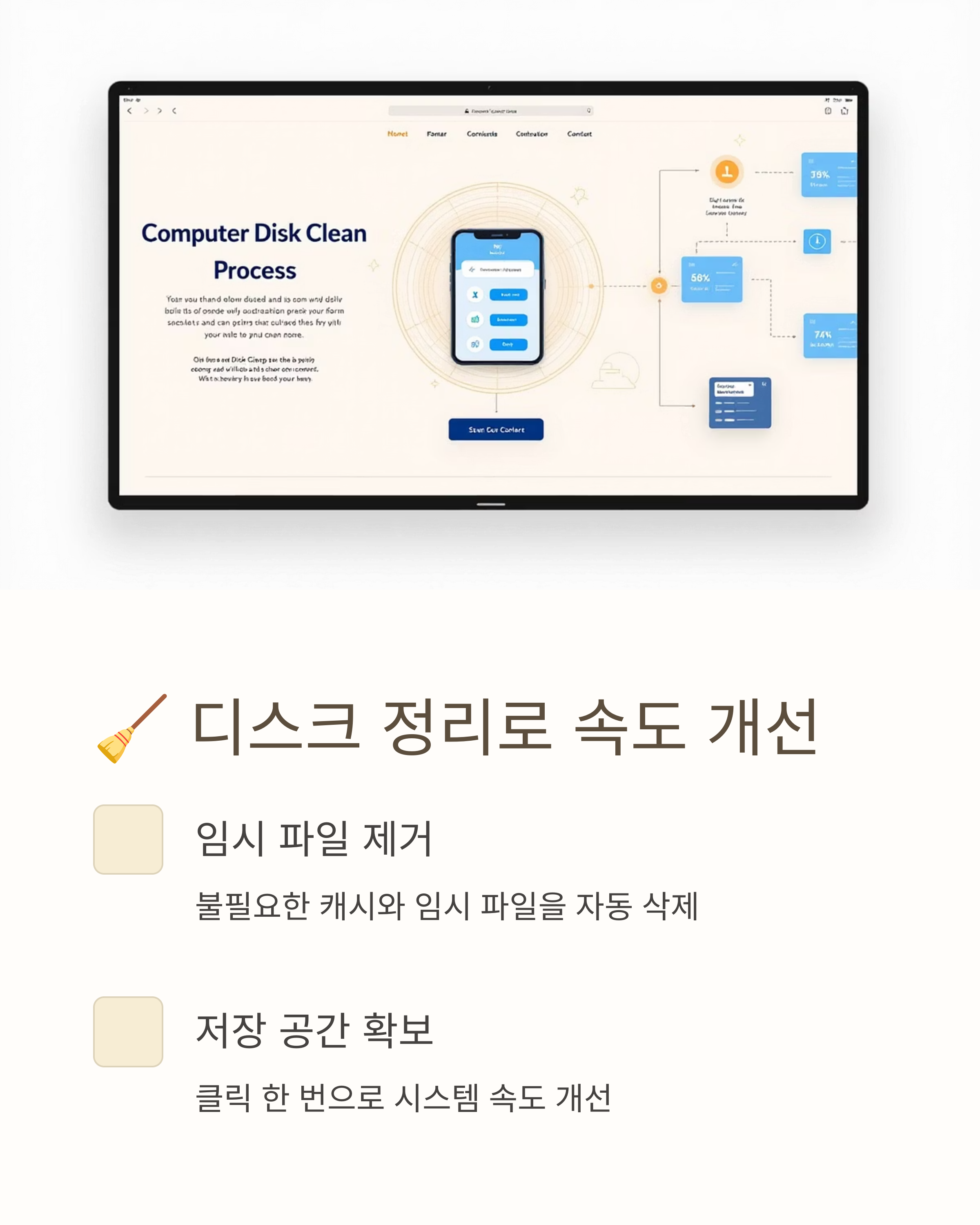 가장 기본적인 기능 중 하나가 디스크 정리예요. 오래된 임시 파일이나 불필요한 캐시 등을 지워서 저장 공간을 확보해주고 시스템 속도도 조금 더 쾌적하게 만들어줘요.