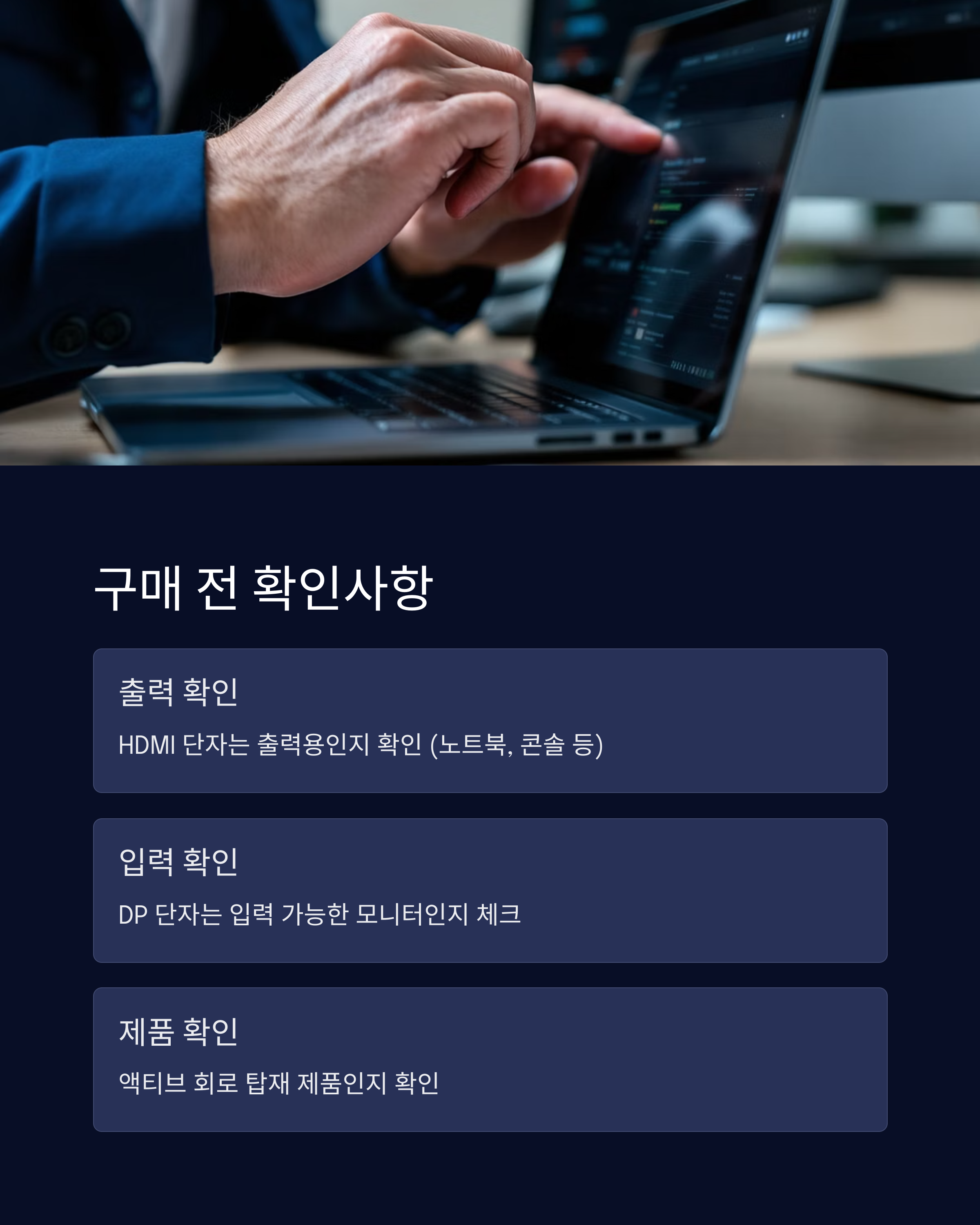 • 화면이 안 뜨면 HDMI가 ‘출력’인지, DP가 ‘입력’인지 다시 확인해 보세요.