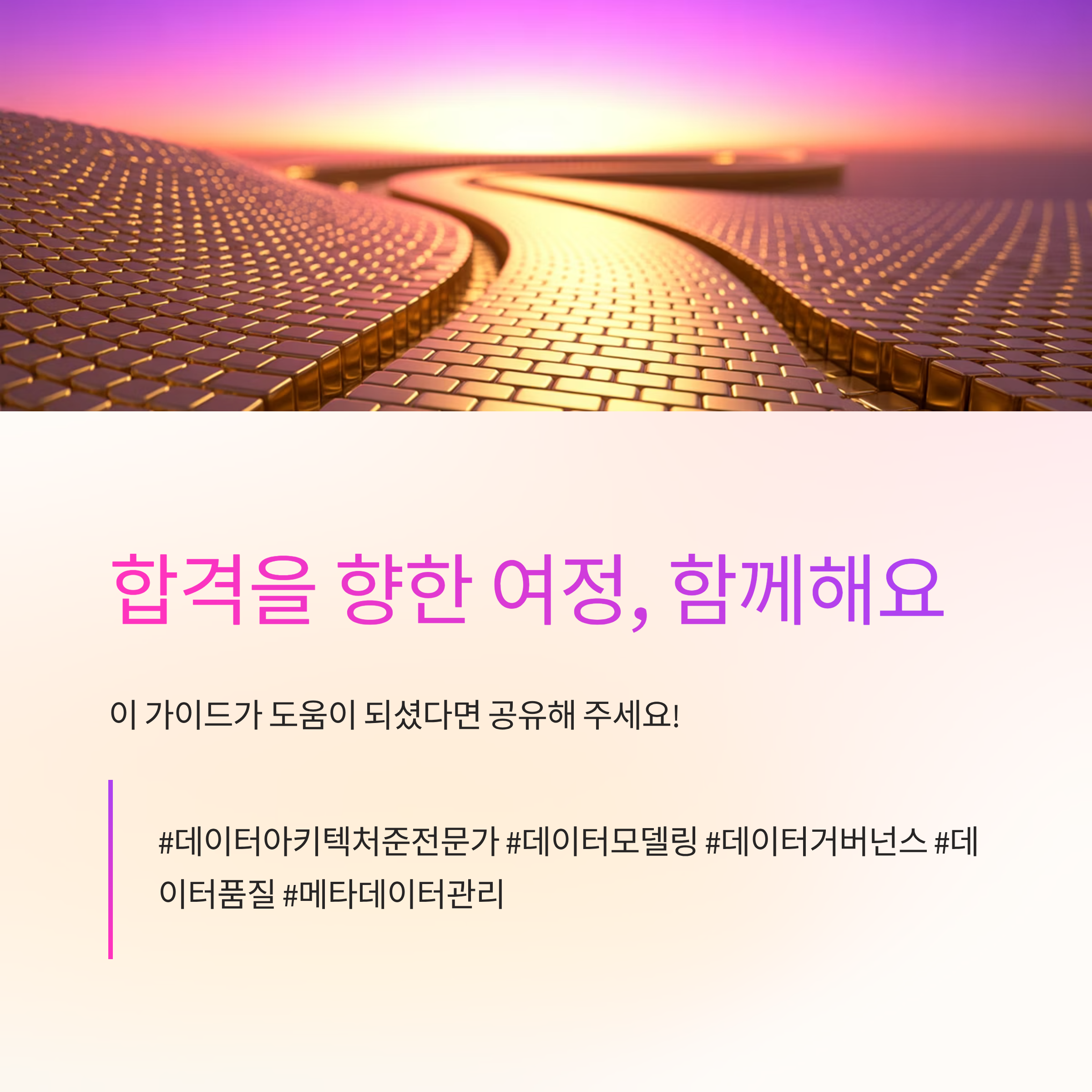 데이터 모델링 툴 연습과 SQL 최적화, 데이터 카탈로그 운영을 곁들이면 실무 체감이 확 달라져요. 오픈 데이터셋으로 미니 프로젝트를 만들어 포트폴리오에 정리해두면 좋아요. 이런 확장 공부가 붙으면 데이터아키텍처준전문가 이후 단계에서도 길이 분명해져요.