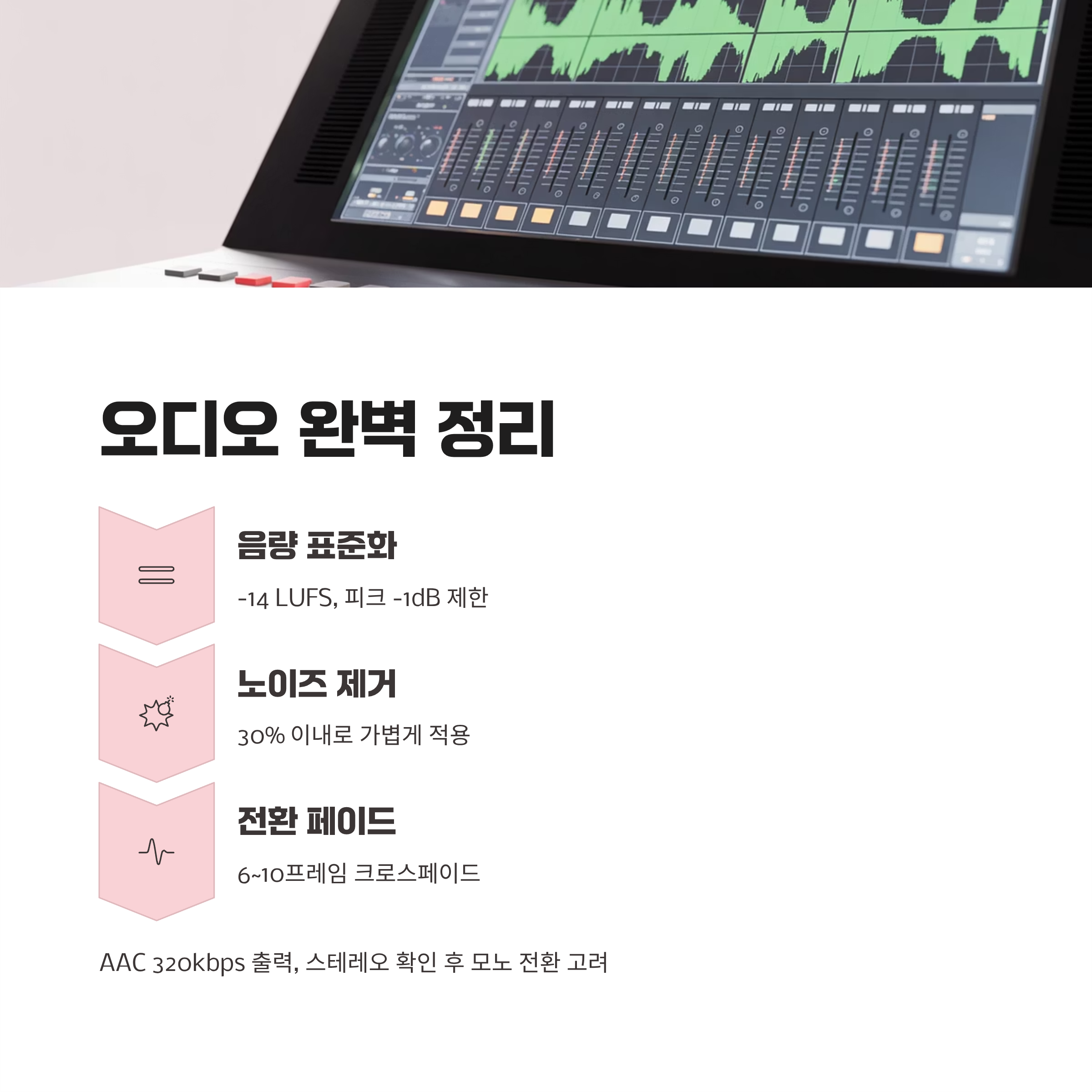 🔊 소리 정리: 음량 표준·노이즈·교차 페이드