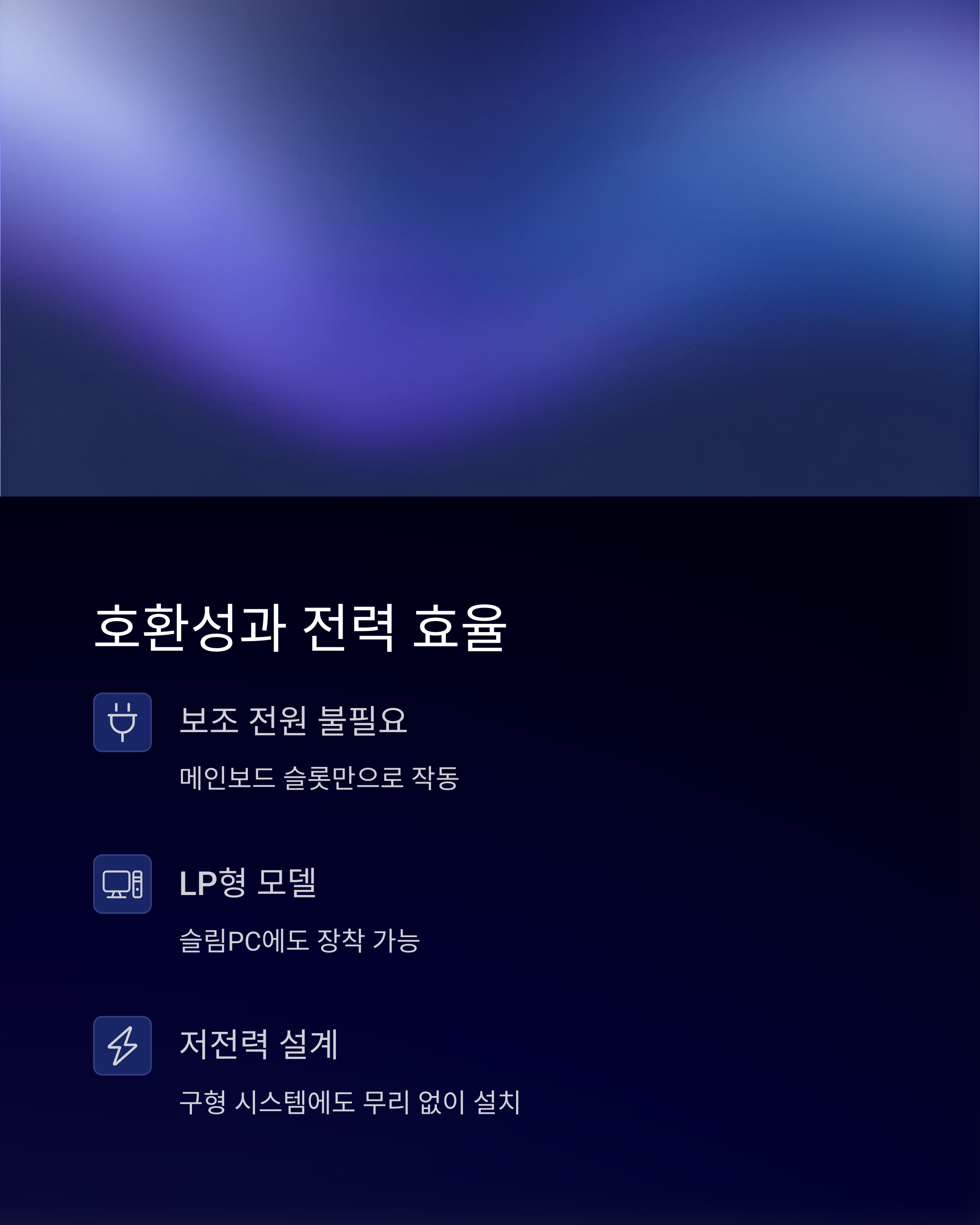 파워 여유가 없거나 구형 시스템에도 무리 없이 설치할 수 있어요.