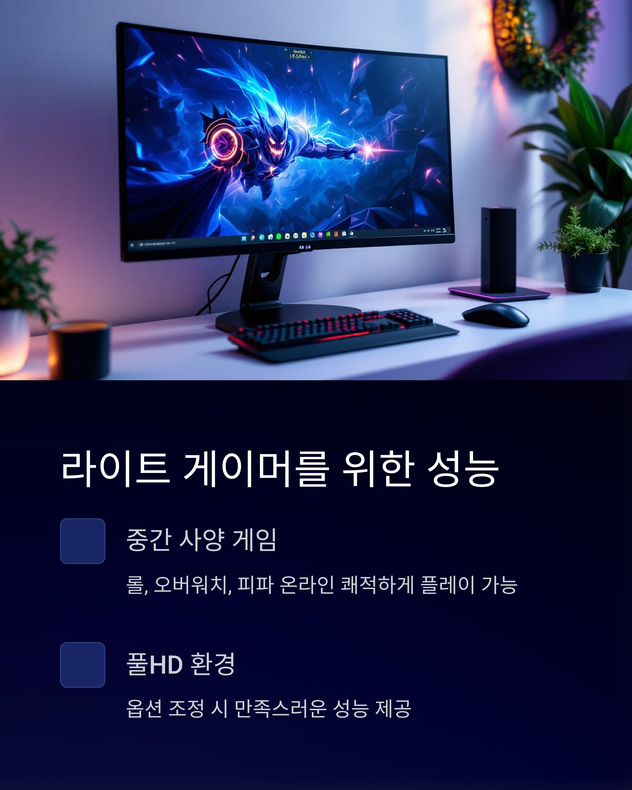 A. 고사양 게임은 어렵지만, 라이트한 온라인 게임에는 적합해요.