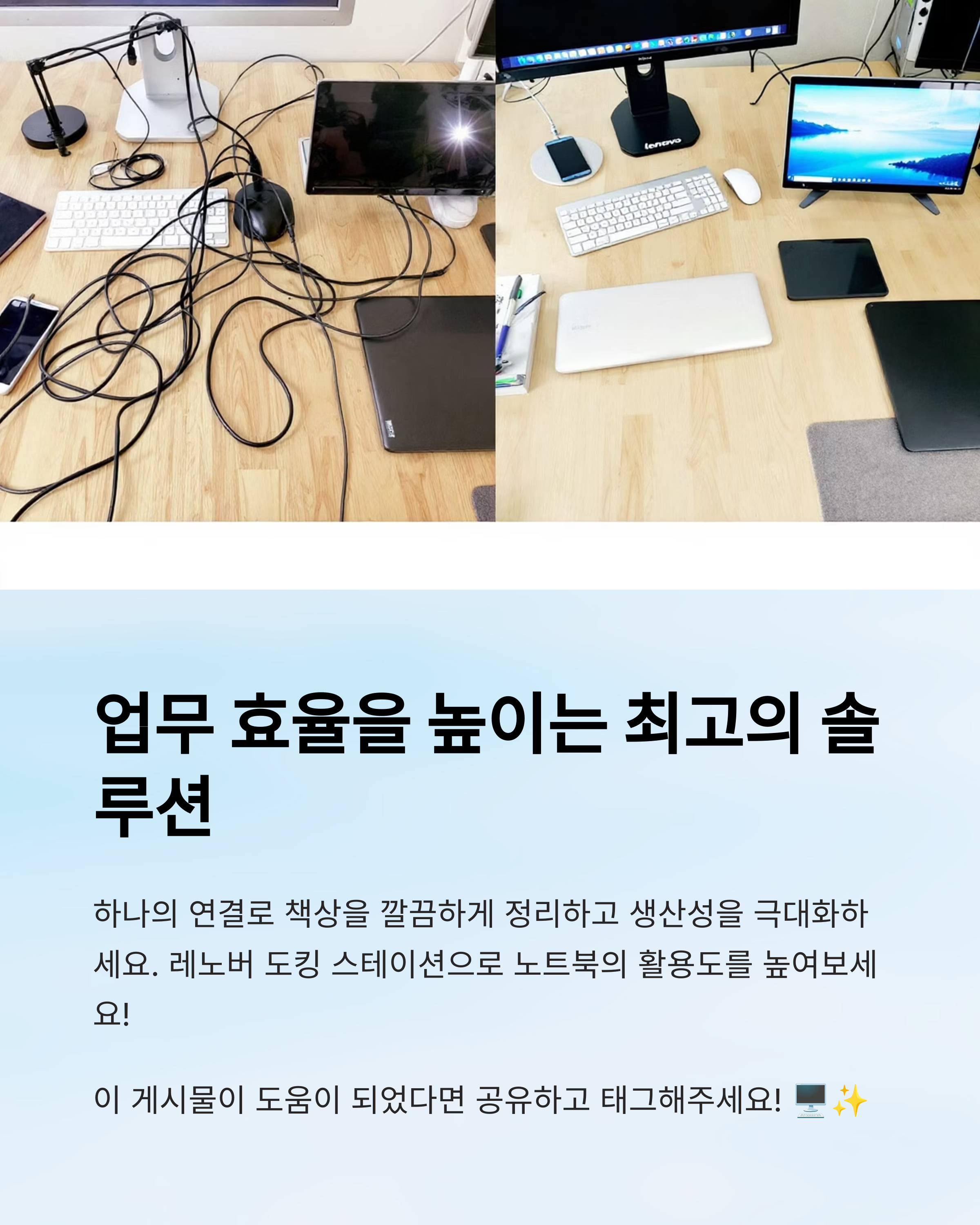 오늘은 레노버 도킹 스테이션에 대해 알아봤습니다. 하나의 연결로 책상 위를 깔끔하게 정리하고, 업무 효율을 한층 끌어올릴 수 있는 최고의 솔루션! 특히 재택근무, 원격 수업 환경을 업그레이드하고 싶은 분께 강력히 추천합니다. 🖥️✨