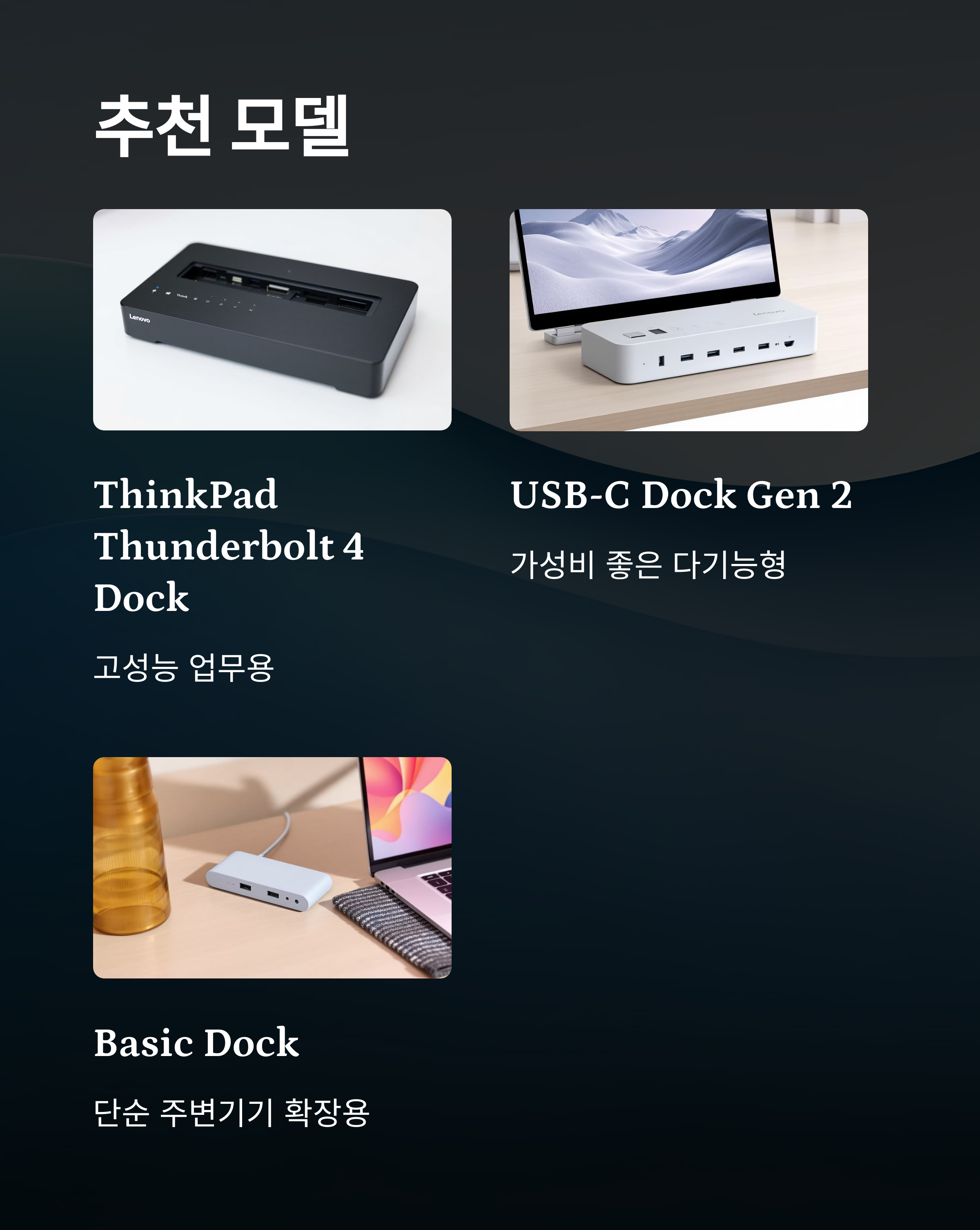 - ThinkPad Thunderbolt 4 Dock: 고성능 업무용