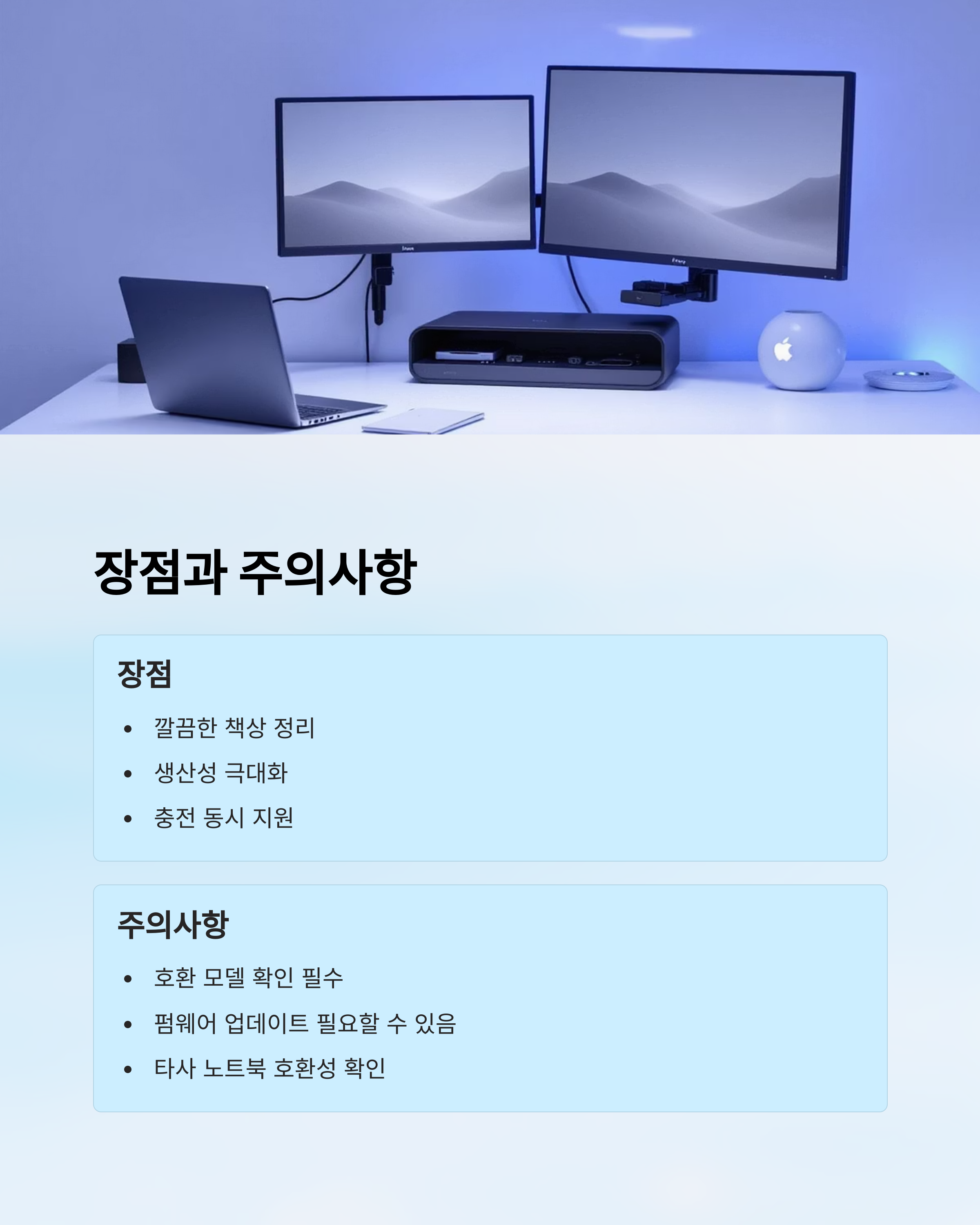| 장점 | 깔끔한 책상 정리, 생산성 극대화 |