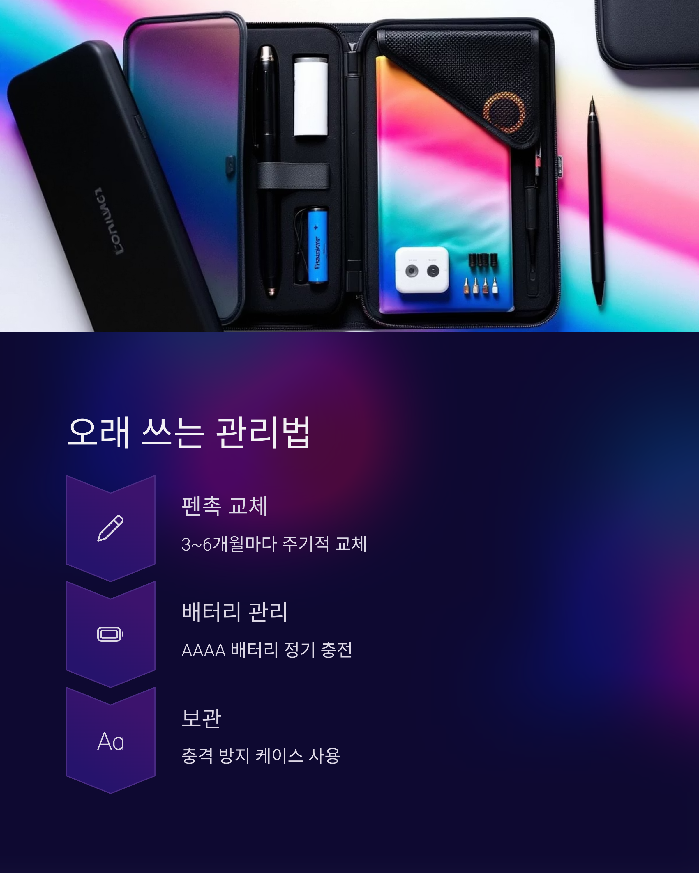 펜촉이 닳거나, 배터리 문제로 고장나는 경우 많아요. 아래 관리 팁 참고하세요.