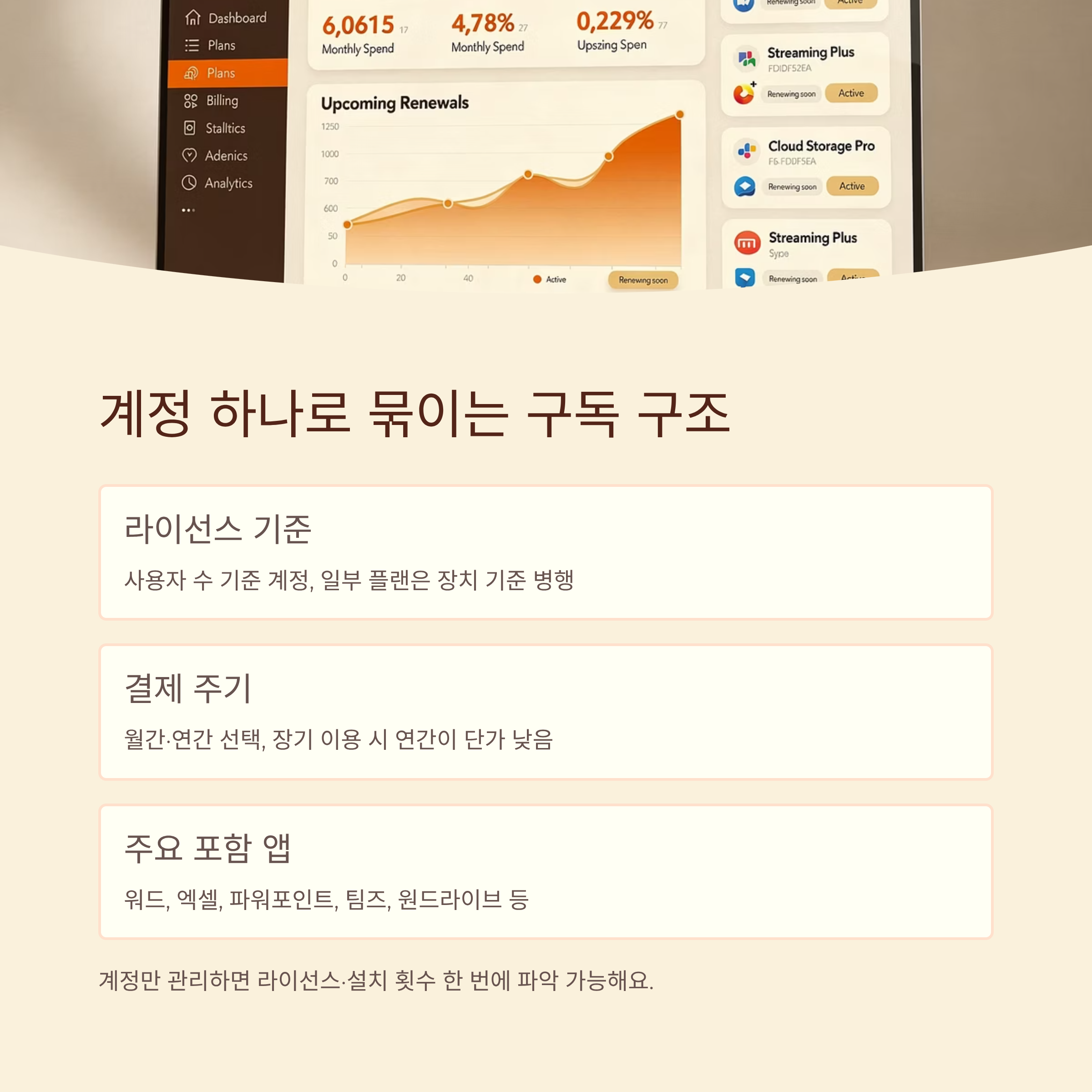 | 주요 포함 앱 | 워드, 엑셀, 파워포인트, 팀즈, 원드라이브 등 생산성 도구 묶음 |