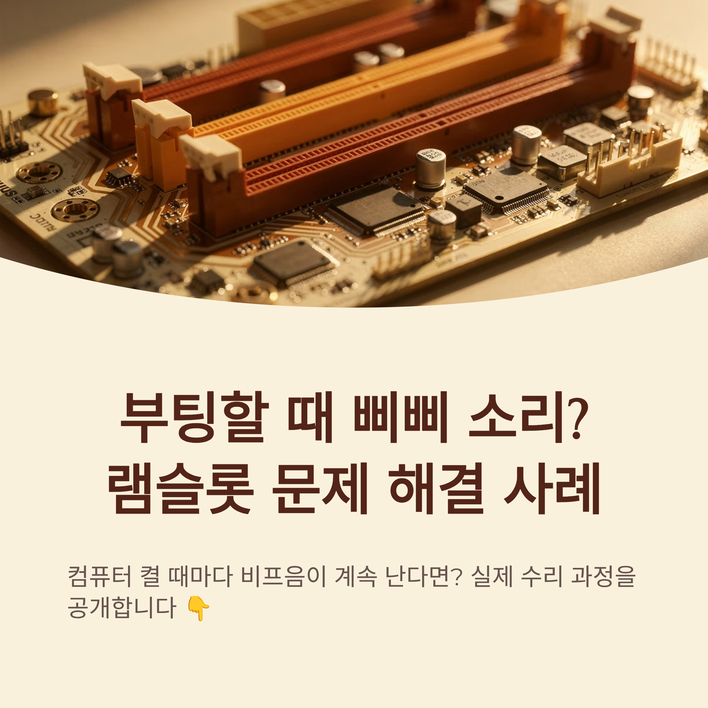 부팅 비프음이 나면 가장 먼저 메모리 자체를 의심하기 쉬워요. 실제로 램 자체가 나가서 소리가 나는 경우도 많고요. 그런데 이번 케이스처럼 테스트용 메모리를 끼워도 특정 슬롯에서만 증상이 반복된다면, 이야기가 조금 달라져요. 이때는 부품보다 그 부품이 꽂히는 자리, 즉 슬롯 접점 상태를 살펴봐야 해요.
