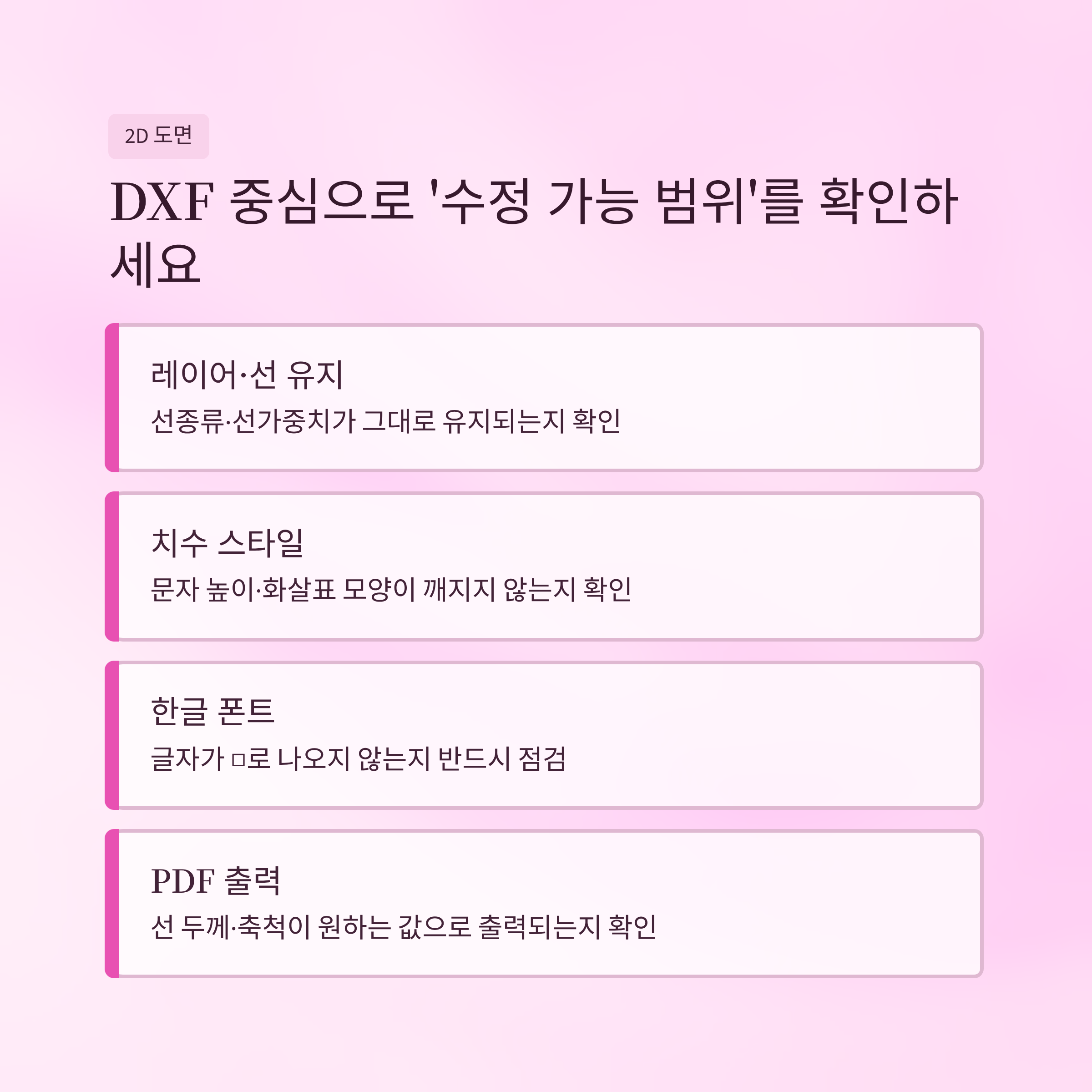 🧭 2D 도면이면 DXF 중심으로 ‘수정 가능 범위’를 확인해요
