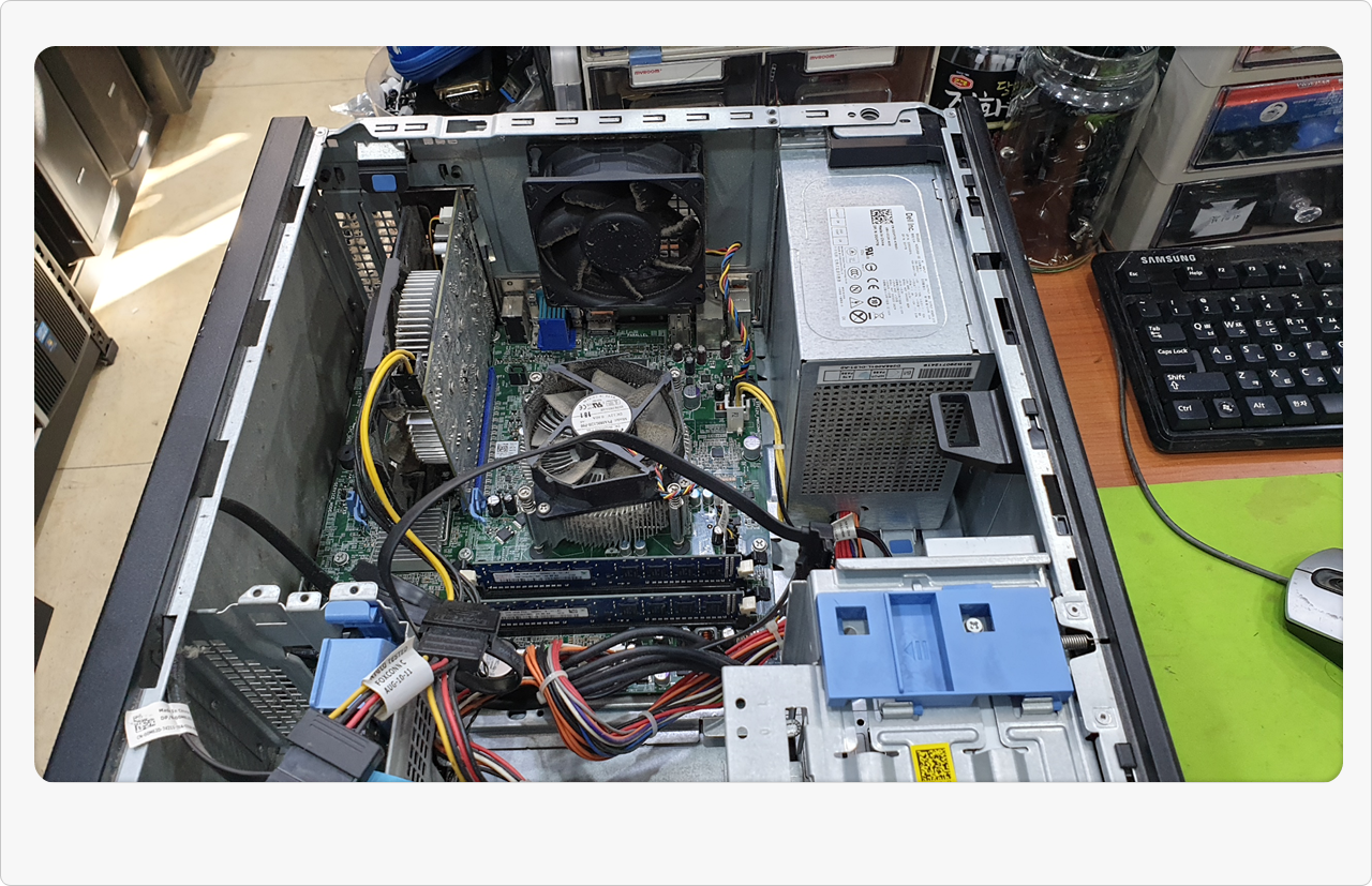본체를 뜯어보니 CPU와 메인보드를 비롯한 주요 부품은 아직 쓸 만한 상태였습니다. 구형이라곤 해도 i5-2400 프로세서면 간단한 문서 작업이나 인터넷 검색, 가벼운 게임 정도는 여전히 무리 없거든요. 저희 PC랜드컴퓨터는 “미원컴퓨터수리”를 고민하는 분들에게도 비슷한 조언을 드리고 있는데, 컴퓨터가 느려졌다고 해서 무조건 새 기기로 갈아타기보다, 업그레이드나 청소·점검을 통해 비용 부담을 줄이는 방법이 종종 효과적입니다.