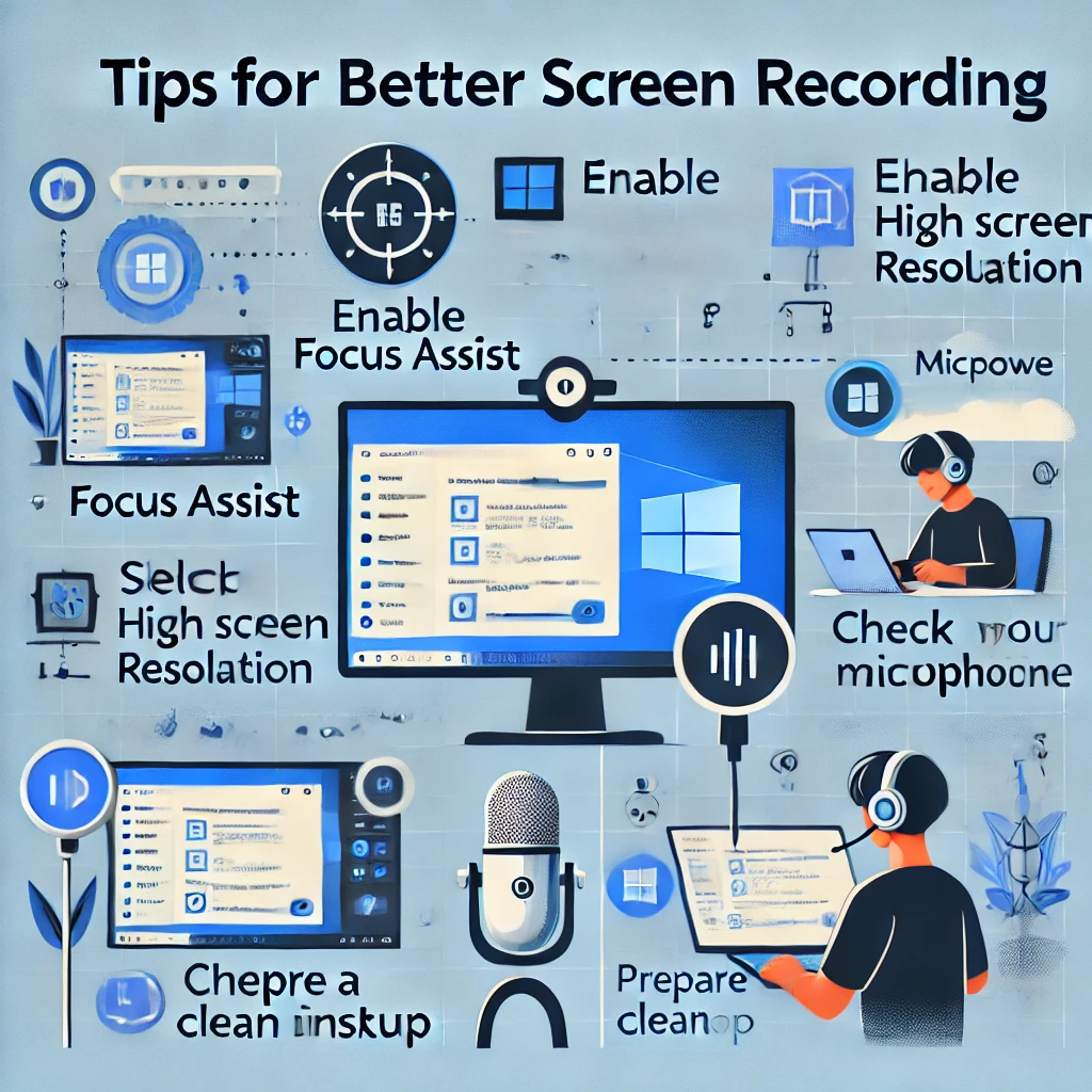 - 집중 모드 켜기: 알림 방해 없이 녹화하려면 Win + A → 집중 지원 켜기