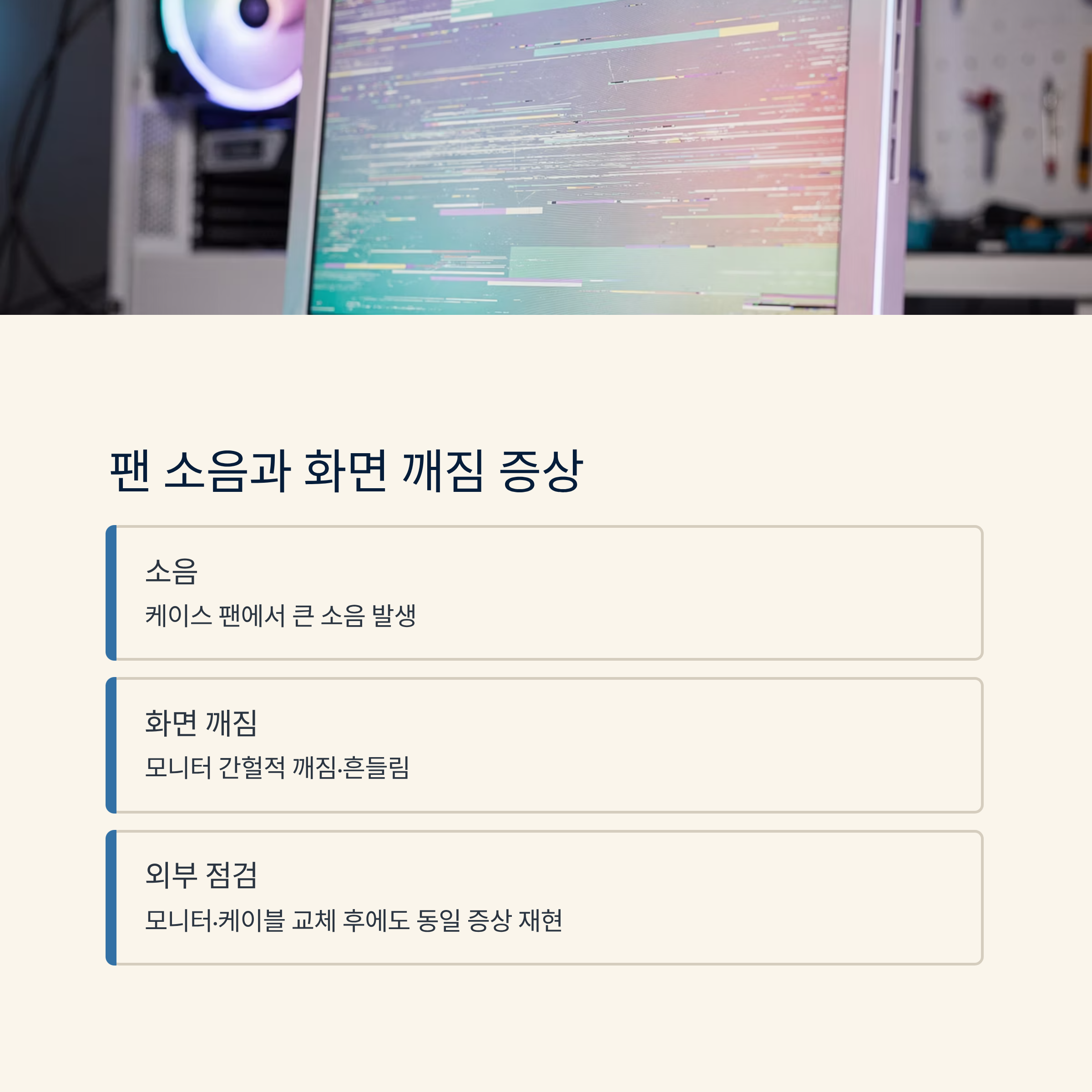 | 팬 소음과 화면 깨짐의 공통 원인 분리 점검 |