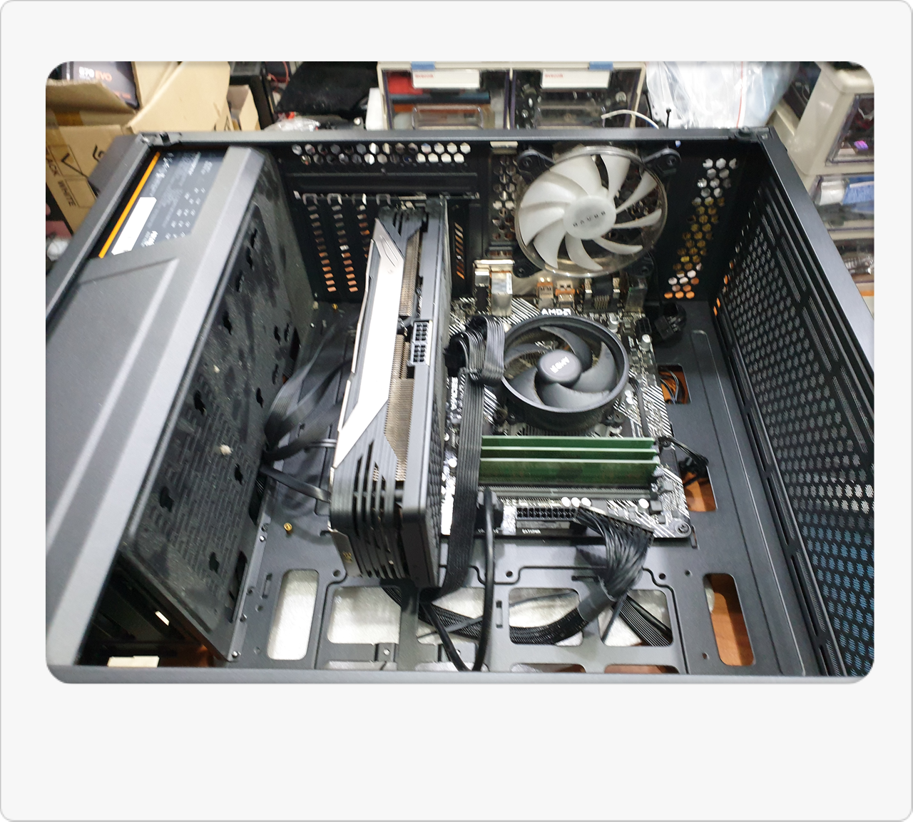우선 본체를 열어 내부를 살펴보니, 생각보다 먼지가 꽤 쌓여 있었습니다. 오래 사용하면 어쩔 수 없이 내부에 이물질이 생기기 마련인데, 이게 잘못하면 열 배출에 영향을 주거나 부품 손상의 원인이 되기도 해요. 손님께서는 매번 외관만 살짝 닦아주셨다는데, 적어도 1년에 한 번쯤은 케이스 내부 점검이 필요하다고 설명드렸습니다. 그래도 다행인 건, 다른 부품들은 큰 문제 없이 잘 버티고 있었어요. 오랜 기간 사용한 만큼 구형이긴 하지만, 의외로 튼튼하다고 느껴지더라고요. 제가 다시 봐도 ‘역시 예전 제품들이 내구성이 좋긴 하구나’라는 생각이 들었습니다.