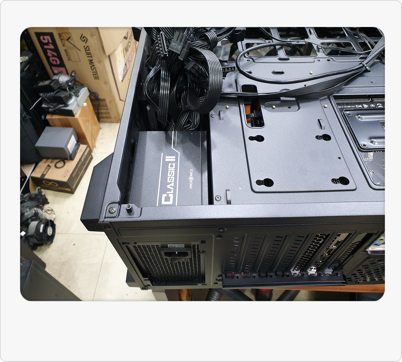 파워 교체라는 작업 자체가 크게 오래 걸리는 일은 아니에요. 다만 케이블을 잘못 연결하거나 다른 부품을 건드리면 예상치 못한 문제가 생길 수 있으니, 꼼꼼하게 확인해야 합니다. 제가 서둘러 부품을 찾고 고장 난 파워를 들어내는 동안, 손님께서는 “이렇게 빨리 고쳐질 줄 몰랐다”며 놀라워하셨어요. 실제로 10분도 채 걸리지 않아 교체를 마무리했으니, 왠지 저도 기분이 좋더라고요. 무엇보다 ‘나도 언젠가 오래된 컴퓨터가 애착이 생기면 이렇게 아껴가며 써야겠다’라는 생각이 들었습니다.