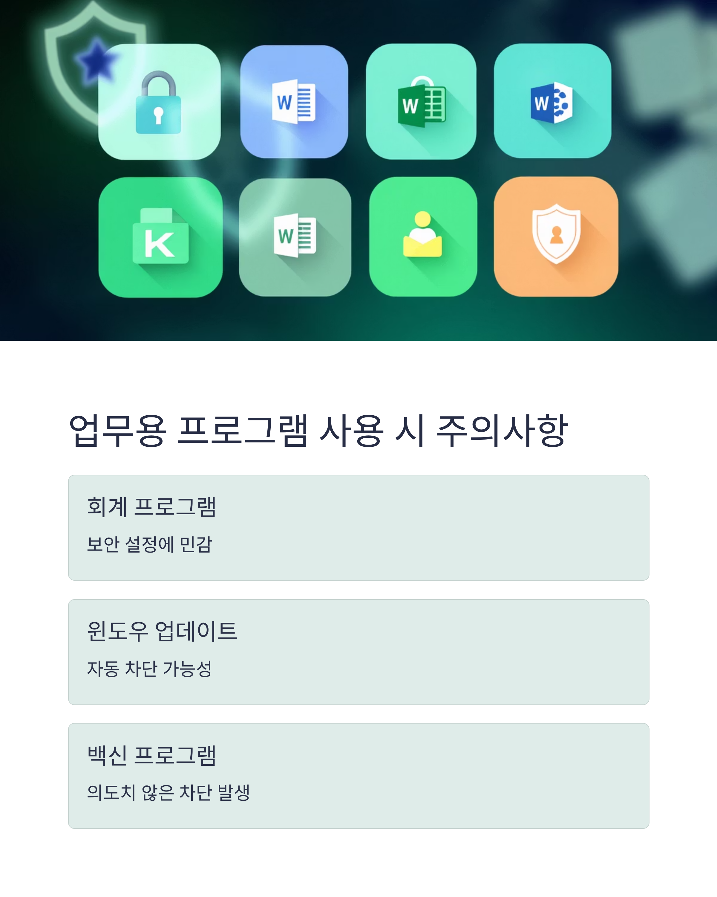 🧾 업무용 프로그램이 차단된 상태였습니다