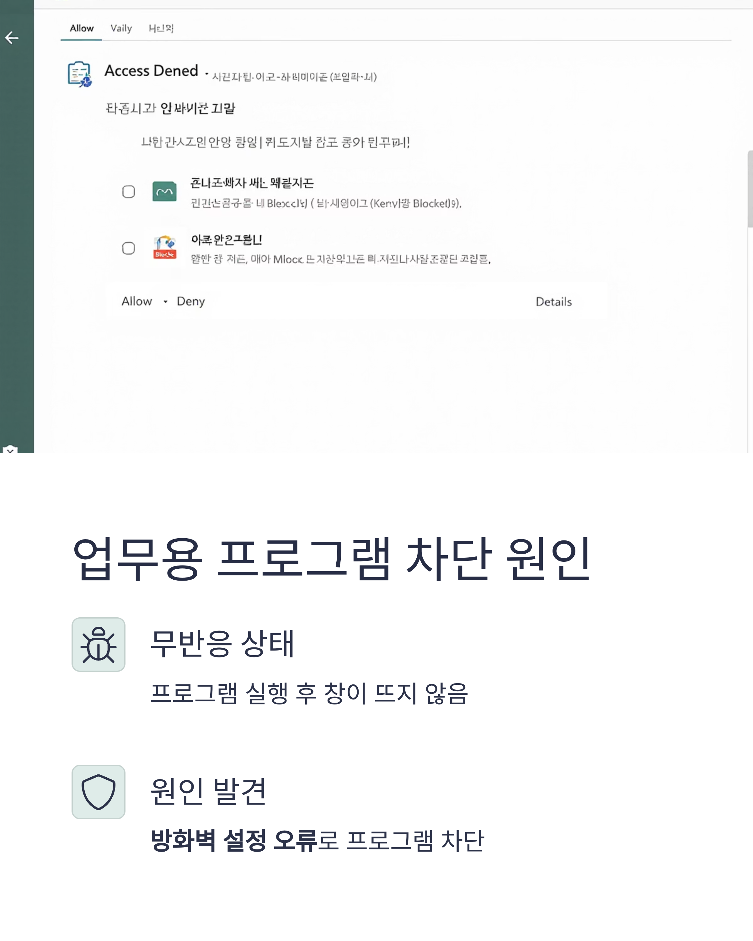 이런 프로그램 차단 문제를 겪는 사례가 많습니다.