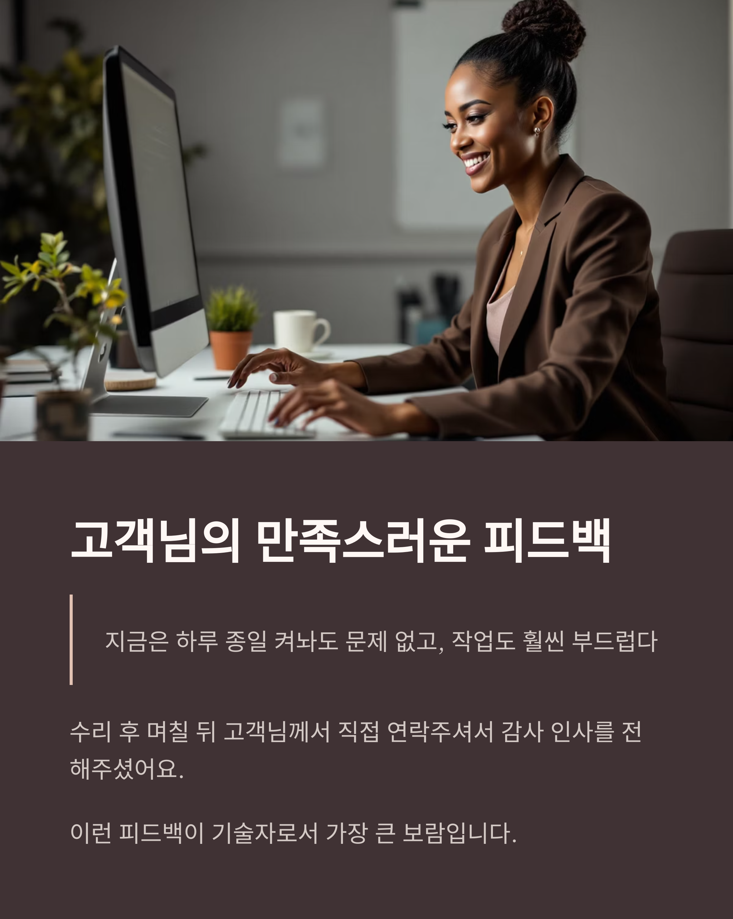 고객님께서 수리된 컴퓨터를 받아가신 후