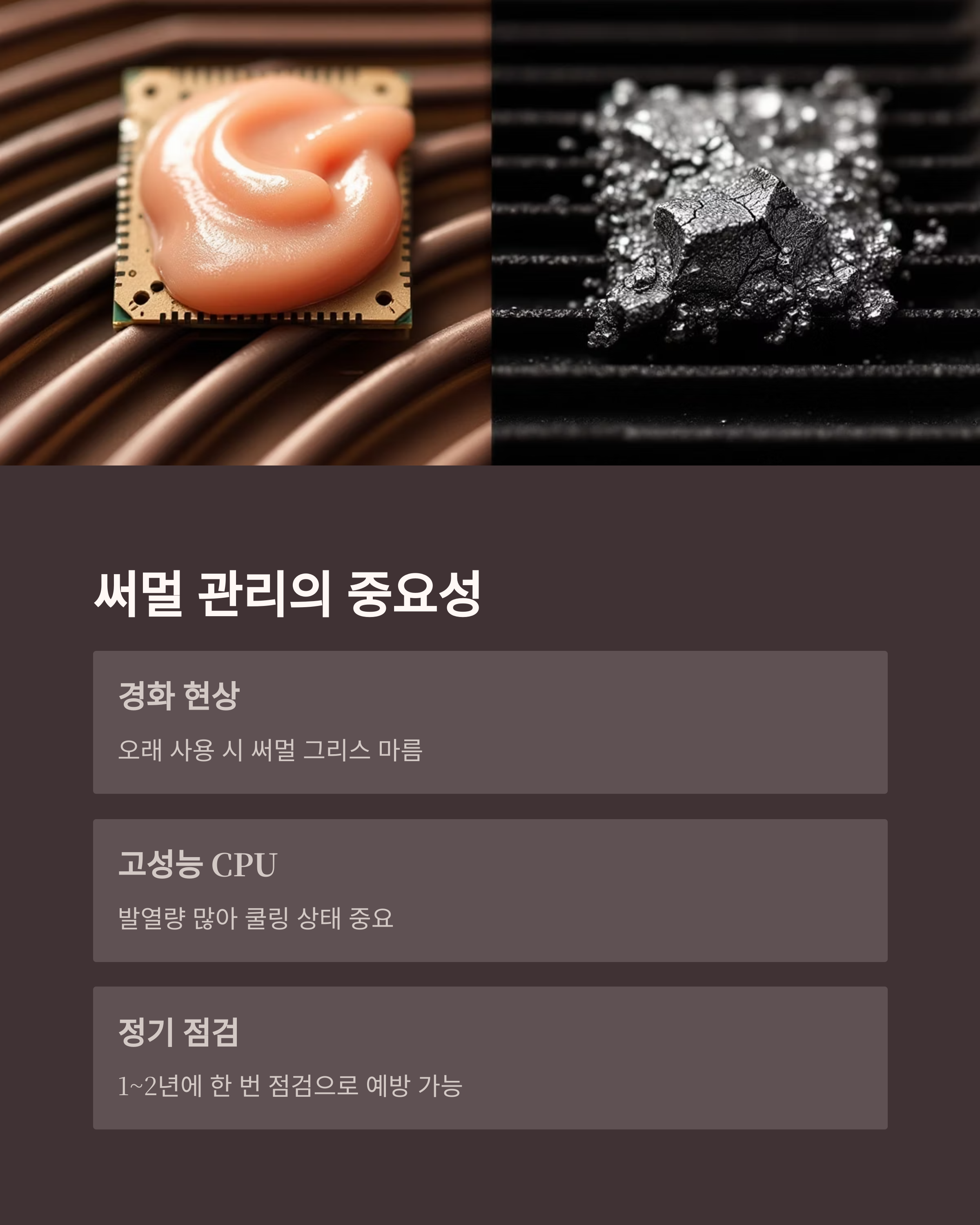 써멀 그리스가 마르거나 경화되어 제 역할을 못하게 됩니다.