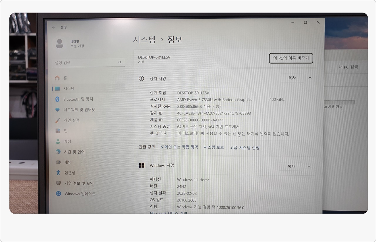 우암동컴퓨터수리 AMD Ryzen 5 7530U 윈도우11 설치 (0) | 2025.02.28 |
