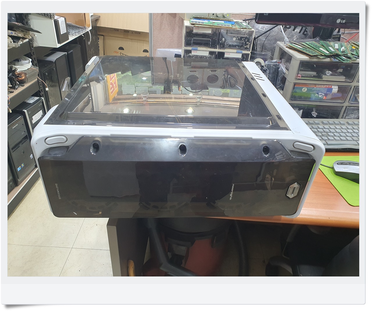 우선 본체 내부의 주요 부품부터 육안으로 살폈습니다. 먼지가 너무 많이 쌓이거나, 메인보드 일부가 손상된 흔적이 보이면 해당 부품의 교체를 고려해야 합니다. 다행히 메인보드는 외관상 큰 문제가 없어 보였고, 램이나 그래픽카드도 접촉 불량 징후는 없었습니다. 이후 SSD를 별도의 장비에 연결해 제대로 읽히는지 테스트해보았는데, 아무런 데이터도 인식되지 않을 정도로 상태가 매우 심각했습니다. 이처럼 손상이 진행된 SSD는 복구가 어렵고, 새로운 디스크로 교체하는 것이 현명한 판단이 됩니다.