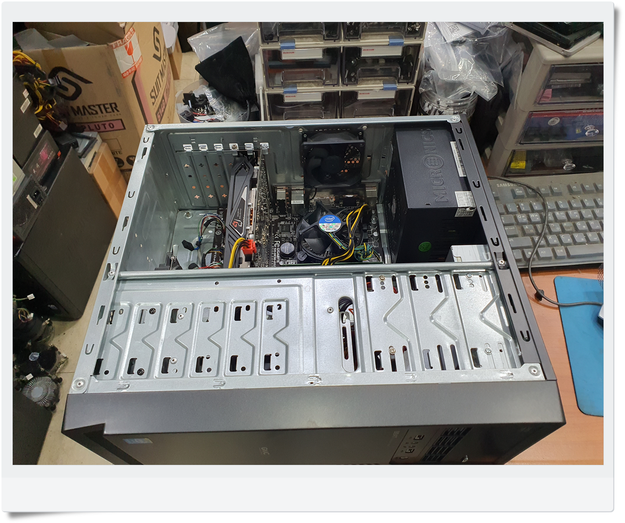 새 메인보드를 장착한 뒤 전원을 넣어보니, 이제야 정상적으로 팬이 돌고 부팅 화면도 뜨는 것을 확인했습니다. 손님은 애초에 파워 문제가 아니라 메인보드 불량이었다는 점에 놀라워하셨고, 동시에 인터넷 정보만 맹신하면 오진을 할 수 있다는 사실을 새삼 깨달으신 듯했습니다. 물론 파워 고장은 수곡동컴퓨터수리(2) 경험상 흔히 볼 수 있는 사례입니다. 하지만 고장 증상이 겉보기와 달리 다른 곳에서 비롯되는 경우도 많으므로, 정확한 진단 과정이 정말 중요하다는 것을 다시금 느끼게 됩니다.