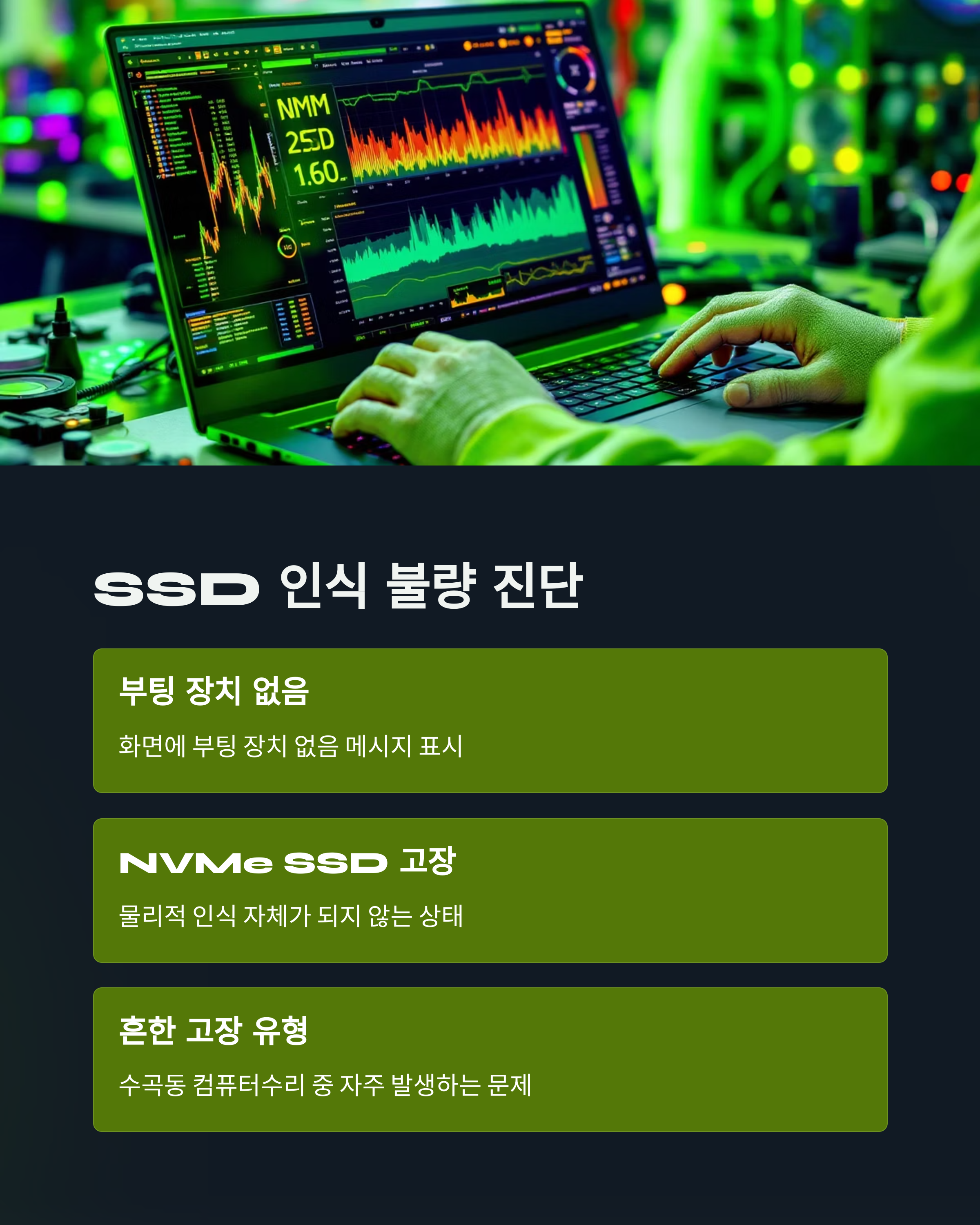 SSD 손상으로 인한 부팅 불가 사례가 꾸준히 접수됩니다.