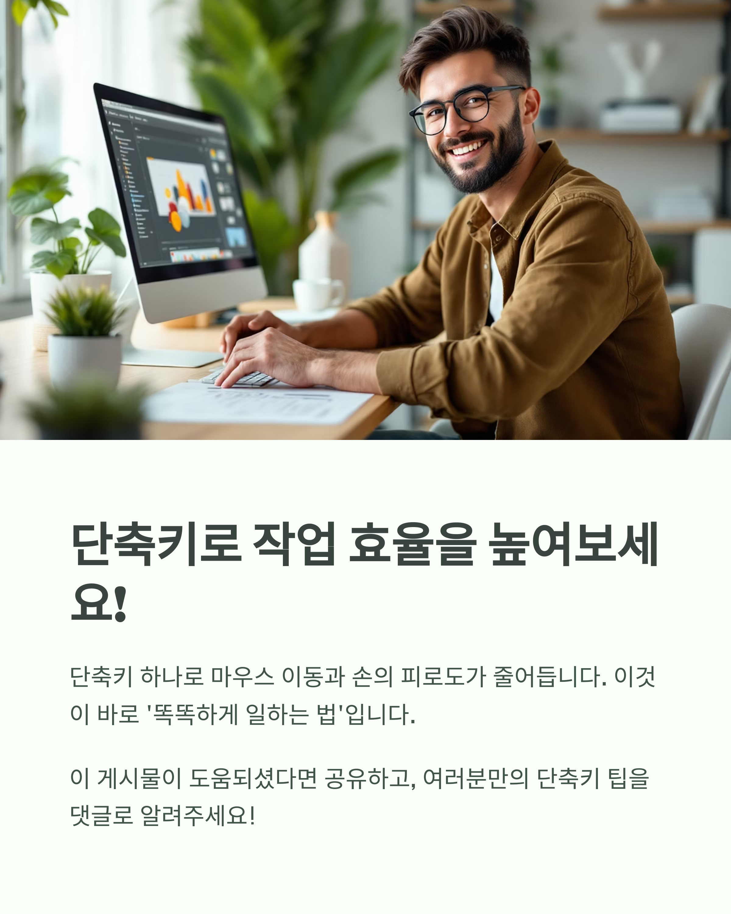 단축키 하나 바꿨을 뿐인데, 마우스 이동이 줄고 손의 피로도가 줄어요. 그게 바로 '똑똑하게 일하는 법' 아닐까요?