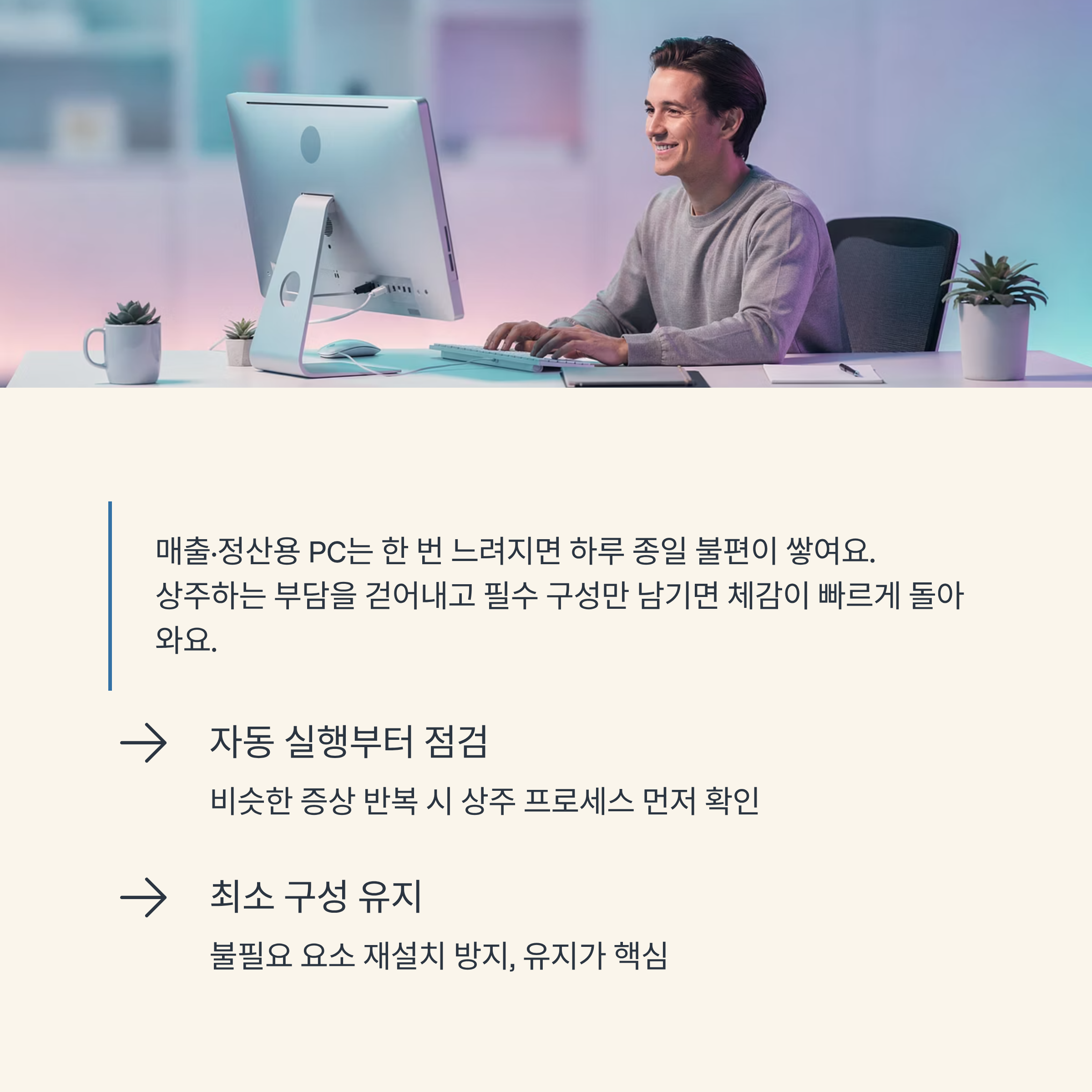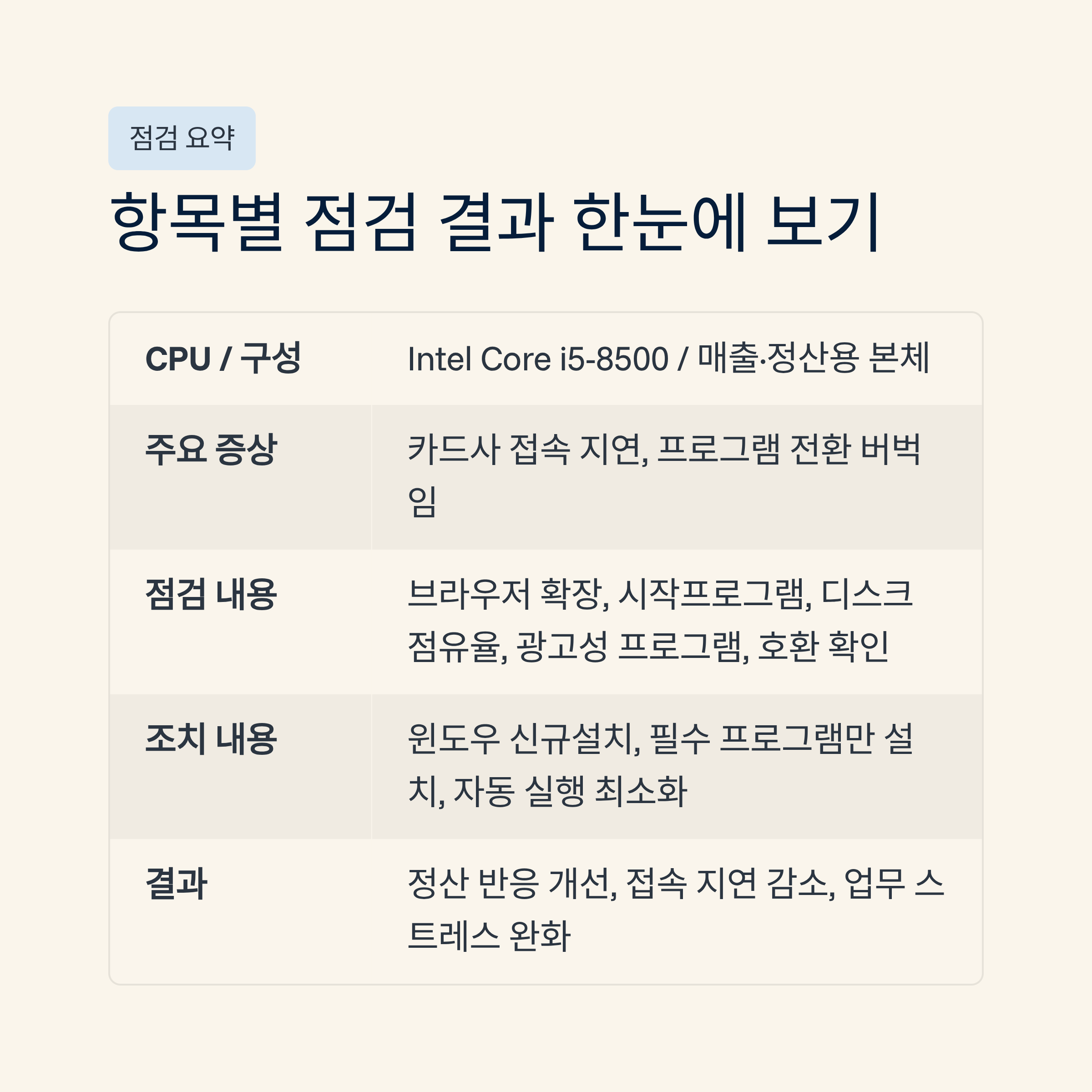 매출·정산용 PC는 한 번 느려지면 하루 종일 반복해서 불편이 쌓이네요.