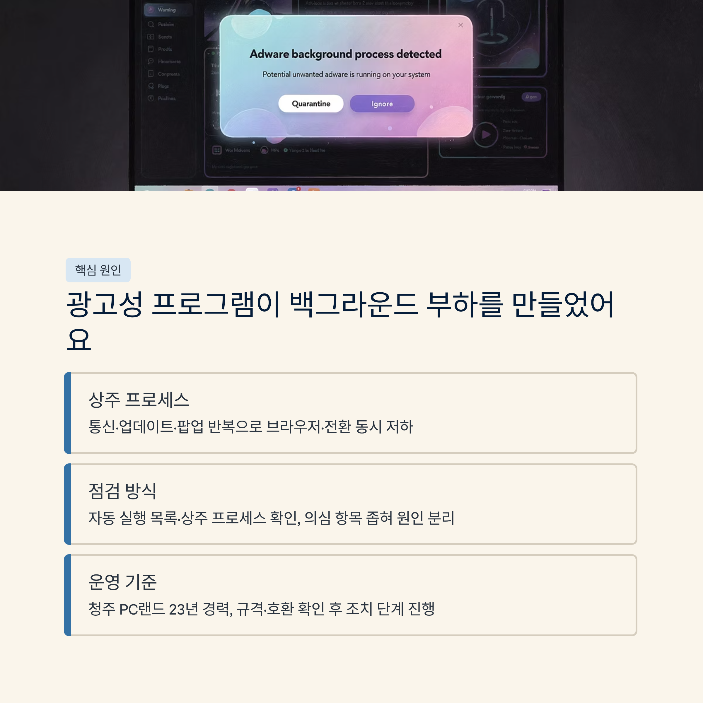 🧩 광고성 프로그램이 상주하면서 백그라운드 부하를 만들었어요