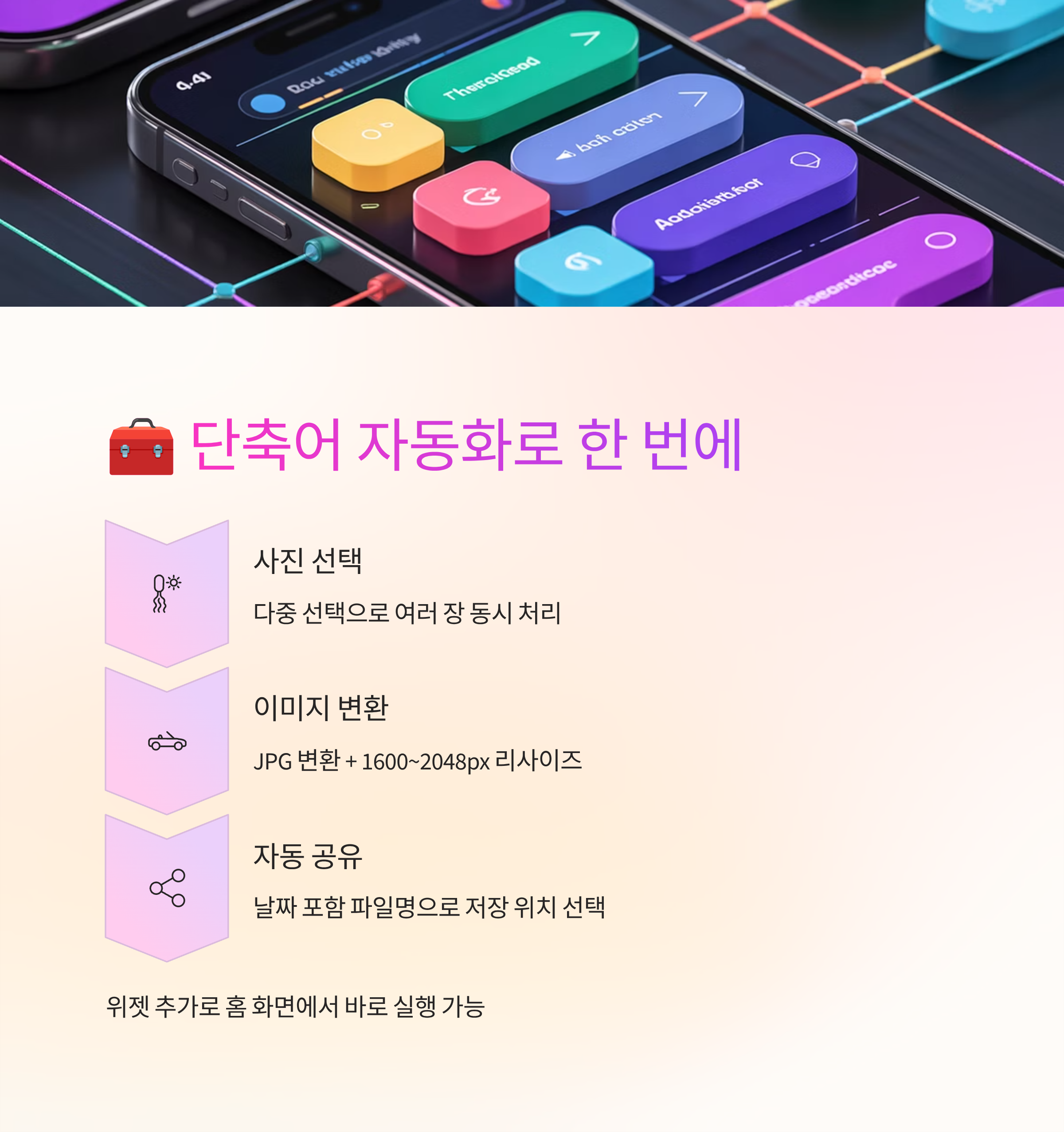 🧰 단축어 자동화, 누르면 변환·리사이즈 끝