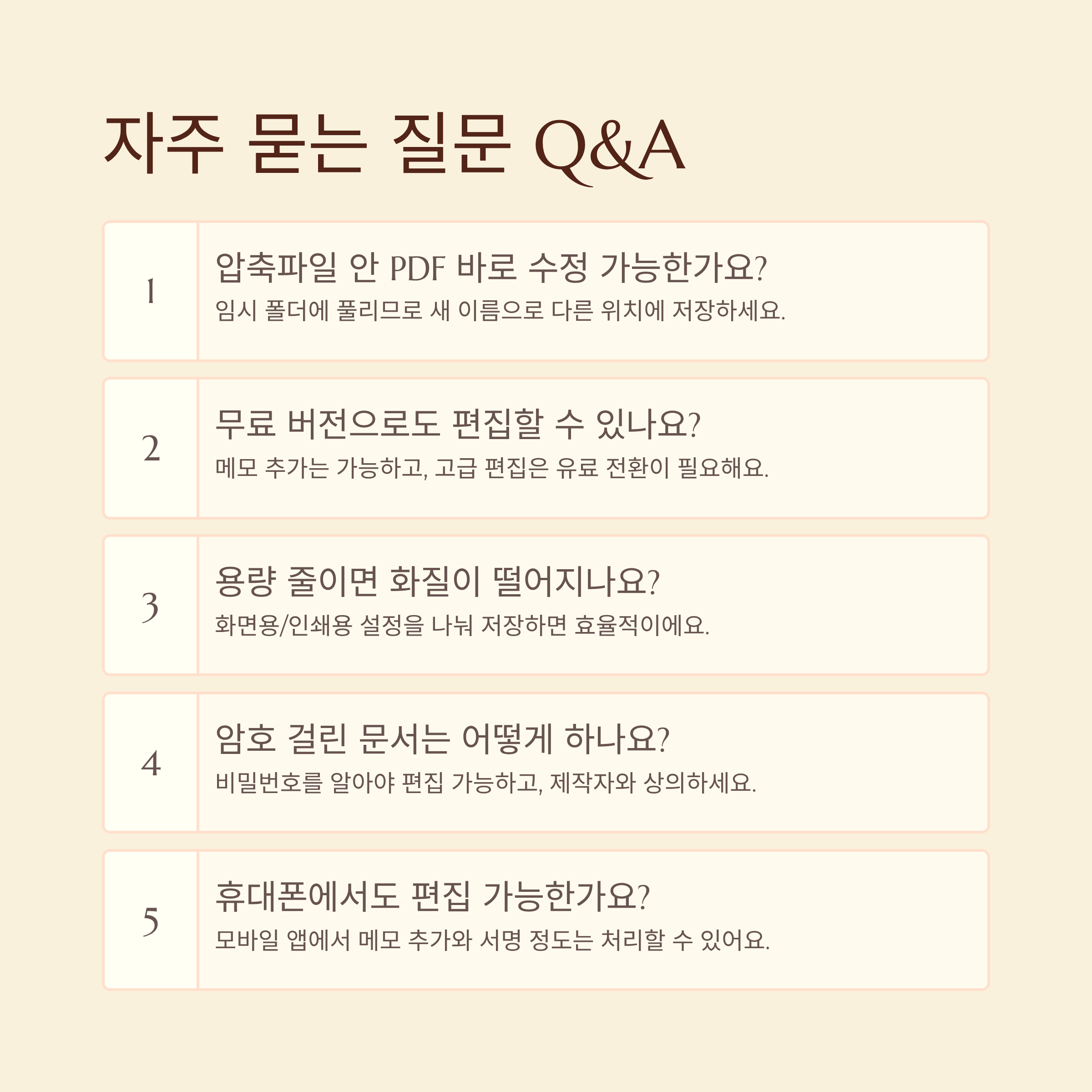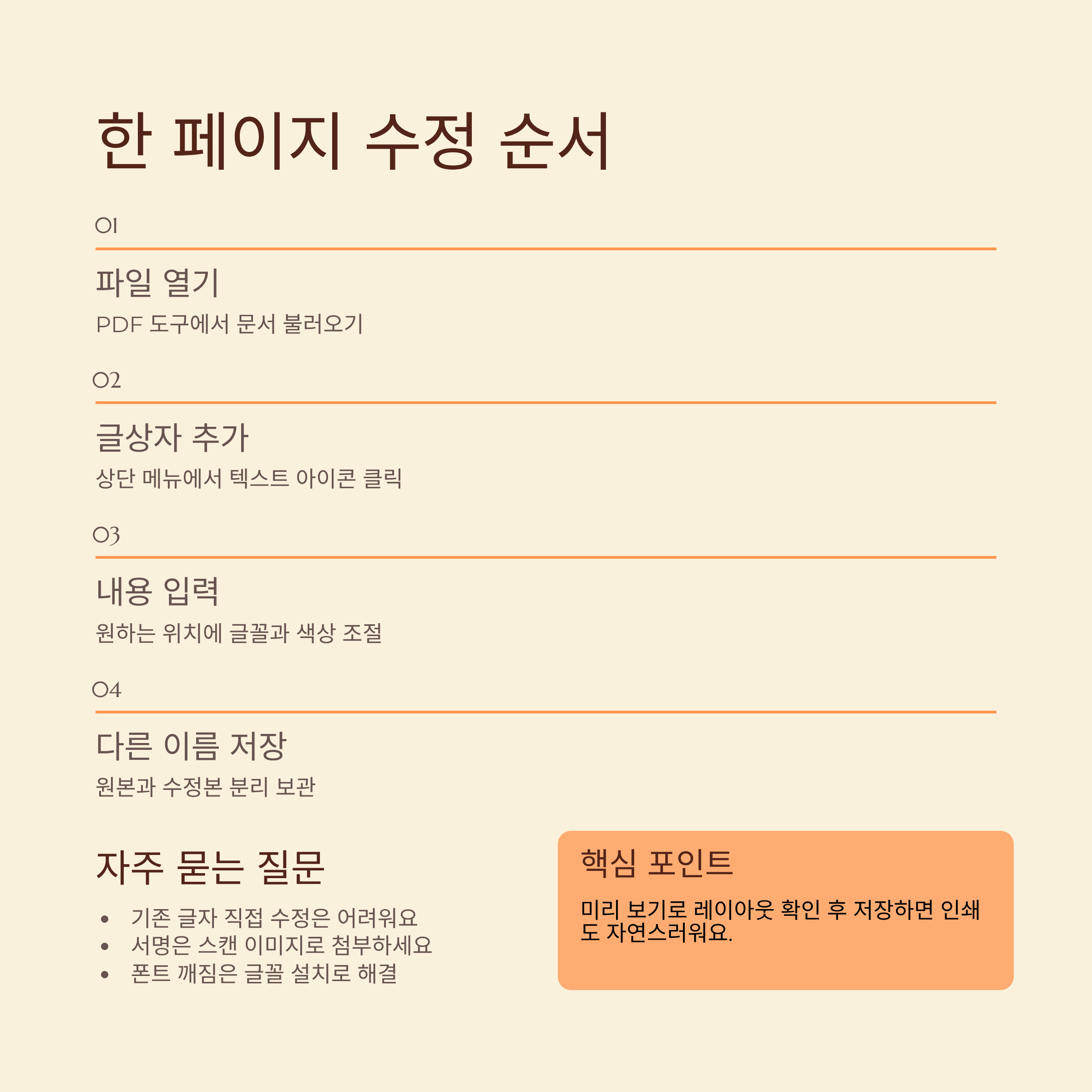 | 기존 글자를 직접 고칠 수 있나요? | 이미지 형태라면 완전 수정은 어렵고, 지우개와 텍스트 추가로 우회하는 방식이 많아요. |
