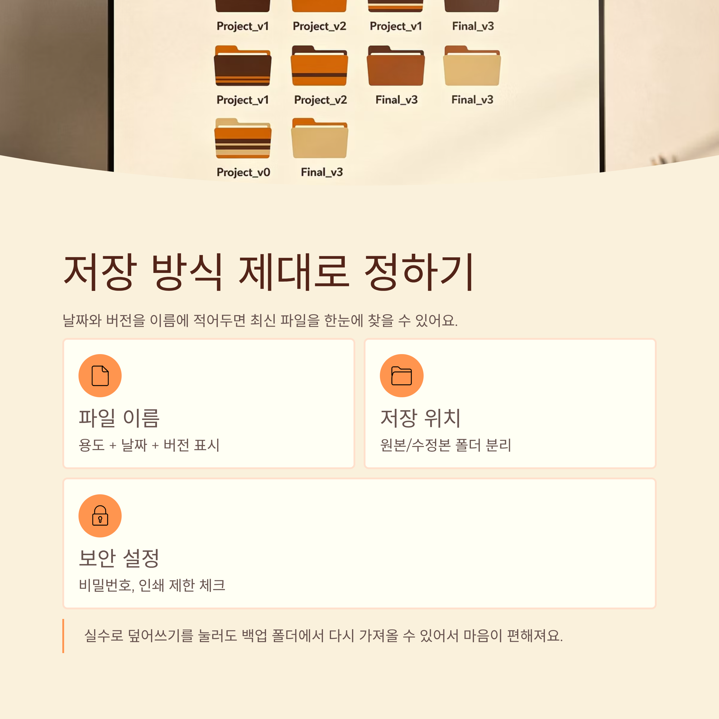 또, 원본 폴더와 수정본 폴더를 아예 따로 만들어 두면 정리가 훨씬 편해요. 실수로 덮어쓰기를 눌렀더라도 백업 폴더에서 다시 가져올 수 있어서 마음이 한결 여유로워지더라고요.