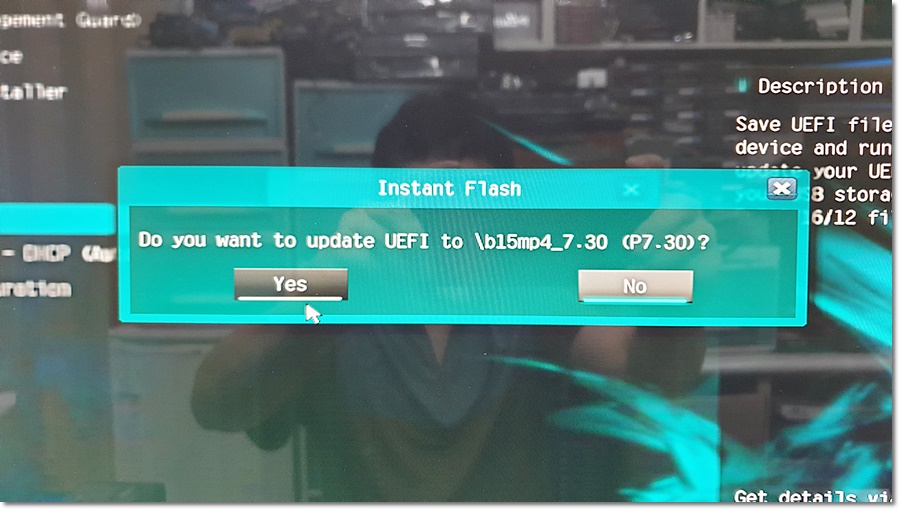 UEFI 업데이트 Yes버튼은 한번 눌러줘야 합니다.^^